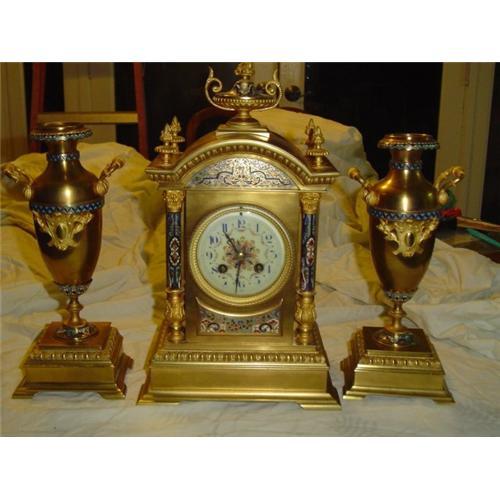 A truly rare find. This is a 19th Century Mougin Deux Medailles French Bronze & Cloisonné Mantle Clock with 2 beautiful matching urns - There are many more pictures available. Email for more. The movement will need a tune up - it runs as it sits. Mantle Clock Collectors, This is the one clock you really and truly need to complete your collections!