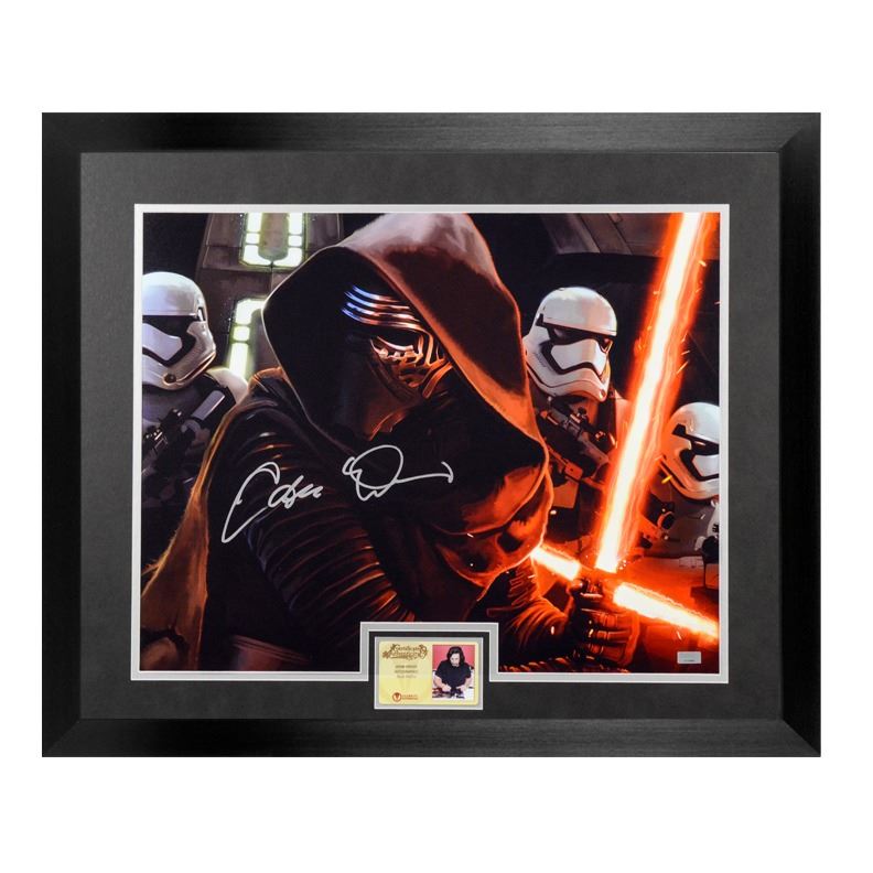 From the Framing Studios of Celebrity Authentics is this 16"x20" Framed Photo (approximately 27"x22.5" finished) of Adam Driver as Kylo Ren from Star Wars: The Force Awakens, personally hand-signed by Adam during his signing with Celebrity Authentics. Ships affixed with the Celebrity Authentics serial-numbered and tamper evident Authentication Hologram and includes Celebrity Authentics Certificate of Authenticity featuring picture of Adam signing the photo. Please note, due to their packaging, to help ensure their safe delivery we are unable to combine framed photos with other items. Stock image used for product images. Item ships with clean, unsmudged autograph in similar location.