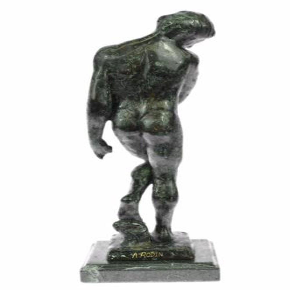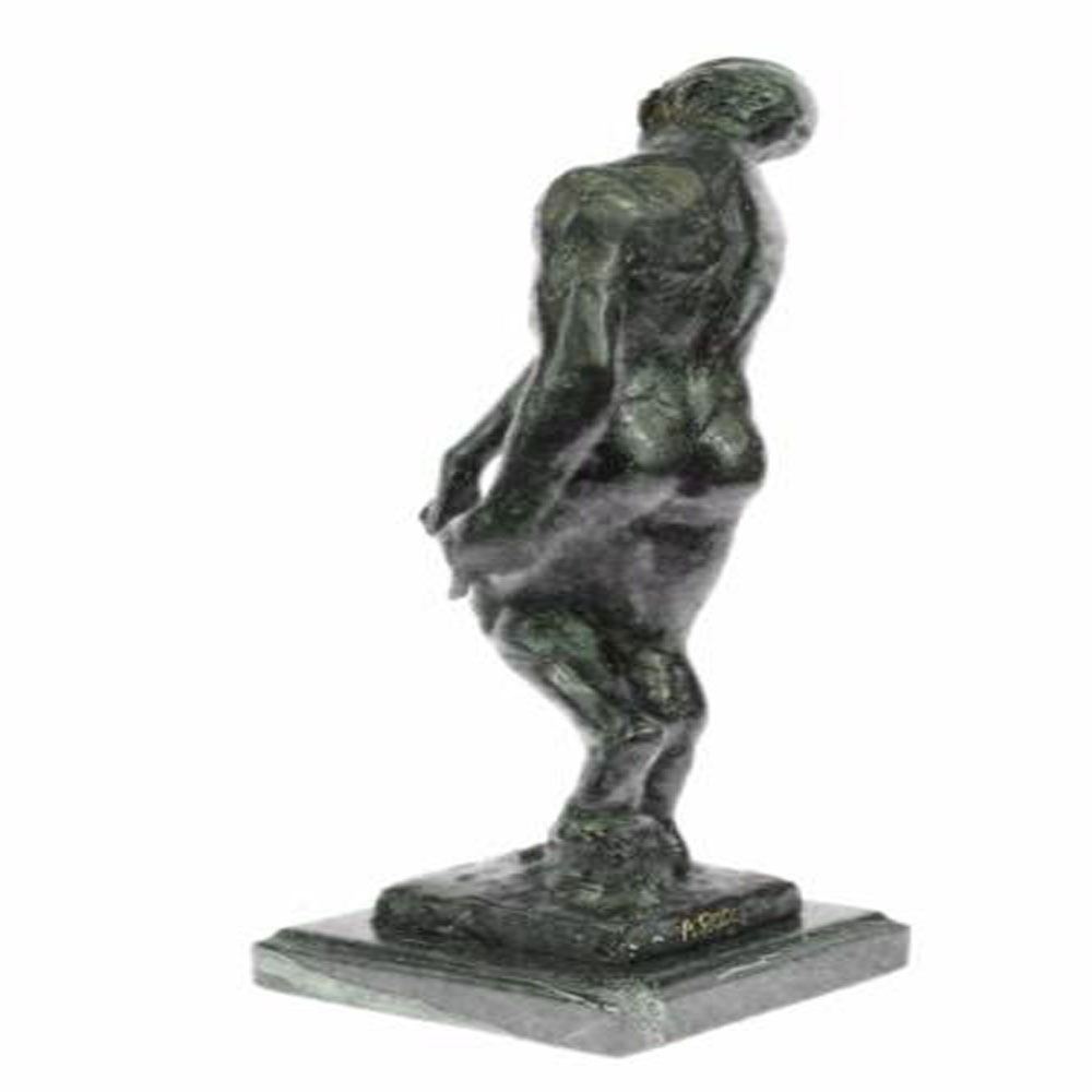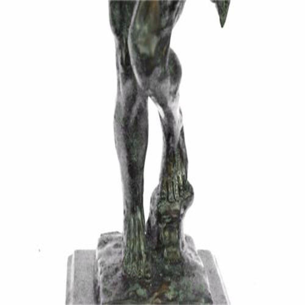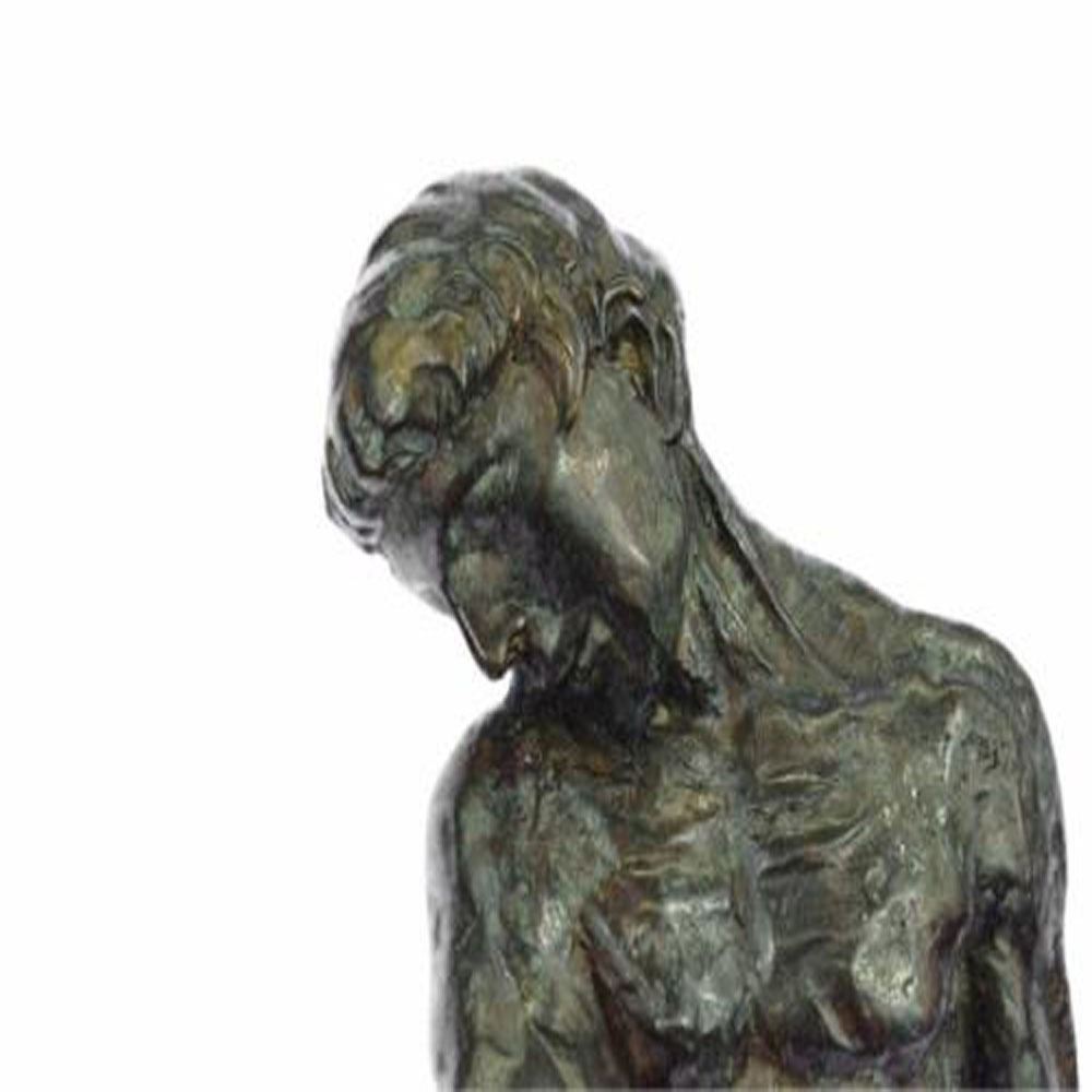 The Nude Man Can Be Imagined Stretching His Arms Among The Morning Sun Streaming In Through An Open Window. His Eyes Hold The Sleepiness Of His Dreams And A Certain Lightness Of Attitude. Through His Pose The Anatomy And The Muscular Movement Of The Body Is Perceived. He Was Fashioned Using The Ancient Method Of The lost wax Technique And Stained With A Greenish Patina Finish For Conservation He Stands Upon A Marble Base. Bronze Dimensions with Marble Base: Height 15 x Width 6 inches. Weight: 9 LBS.