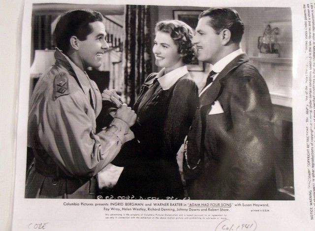 Adam Had Three Sons Adam (Warner Baxter) Costume - In the explosively controversial romantic melodrama "Adam Had Four Sons" (1941), Adam Stoddard (Warner Baxter) hires Emille (Ingrid Bergman) to care for his four sons, but after his wife (Fay Wray) dies, and Adam looses his money in the stock market crash, she goes back to France, causing all kinds of consternation for the sons, not to mention Adam, who has fallen in love with her. This is the screen worn, grey three button suit jacket of Adam (Warner Baxter). It has the original Western Costume Company label inside.