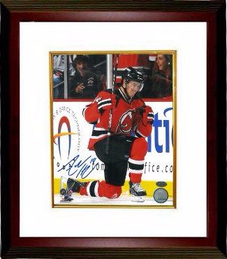 Adam Henrique currently plays for the New Jersey Devils in the NHL. He was selected by the New Jersey Devils in the third round, 82nd overall, in the 2008 NHL Entry Draft. In the first round of the Stanley Cup Playoffs Game 7 against Florida, Henrique scored 2 goals, 1 being the double overtime winner sending the Devils to the Conference Semifinals, becoming just the 2nd NHL rookie to score an overtime winning goal in a game seven. On May 25, 2012, Henrique scored 1:03 into overtime to eliminate the New York Rangers and send the Devils to the 2012 Stanley Cup Finals. This made him the first rookie to score two series-clinching overtime goals in the same playoffs. Adam Henrique has hand signed this New Jersey Devils 8x10 Photo. Leaf Authentics Hologram and Certificate of Authenticity from Athlon Sports. Custom White Mat and Premium Mahogany Frame as shown.