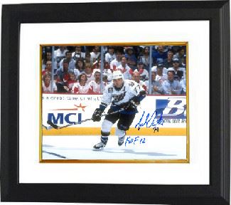 Adam Oates played 19 seasons in the National Hockey League (NHL) for the Detroit Red Wings, St. Louis Blues, Boston Bruins, Washington Capitals, Philadelphia Flyers, Mighty Ducks of Anaheim and Edmonton Oilers. Known as an elite playmaker, his career total of 1,079 assists was the fifth highest total in NHL history at the time of his 2004 retirement.He played in five All-Star Games. He holds the record for most points all-time of any NHL player who also played NCAA Hockey. Oates was inducted into the Hockey Hall of Fame on November 12, 2012 along with Joe Sakic, Pavel Bure, and Mats Sundin. Adam Oates has hand signed this Washington Capitals 8x10 Photo with HOF 12 inscription. Tri-Star Hologram and Certificate of Authenticity from Athlon Sports. Custom White Mat and Premium Black Color Framed as shown
