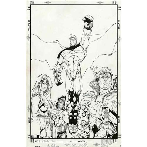 <B>Adam Pollina and Jonathan Sibal - Combo Magazine Cover Original Art (undated).</B></I> Best known for his work on Marvel Comics' <B>X-Force</B></I>, Adam Pollina penciled this awe-inspiring image featuring Supreme, Youngblood, and Prophet for the cover of <B>Combo</B></I> magazine. The art has an image area of 10" x 15", and the condition is Excellent.