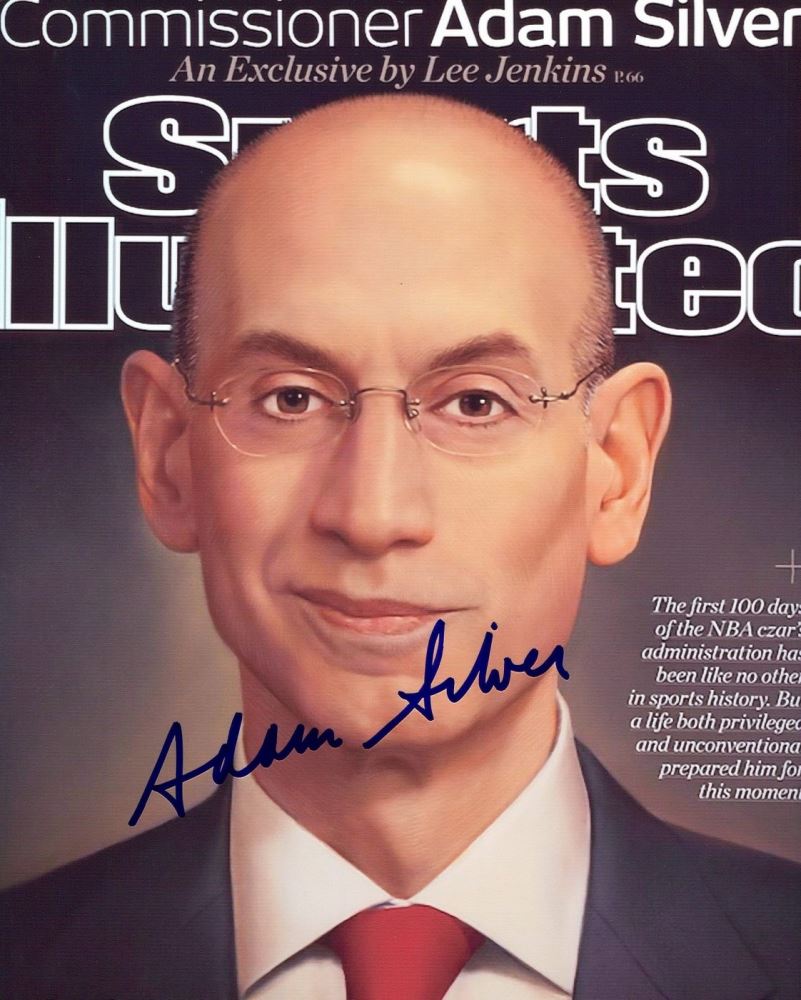 8" x 10" photo. Hand-signed in blue felt-tip pen by Adam Silver. The autograph includes an LOA and lifetime authenticity guarantee from Pristine Auction.