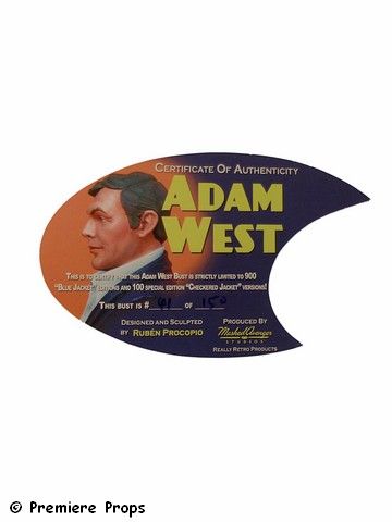 Limited Edition Adam West Bust signed by Adam West. #41 of 150, Sculpted by Ruben Procopio, Produced by Masked Avenger Studios (9x5x3")