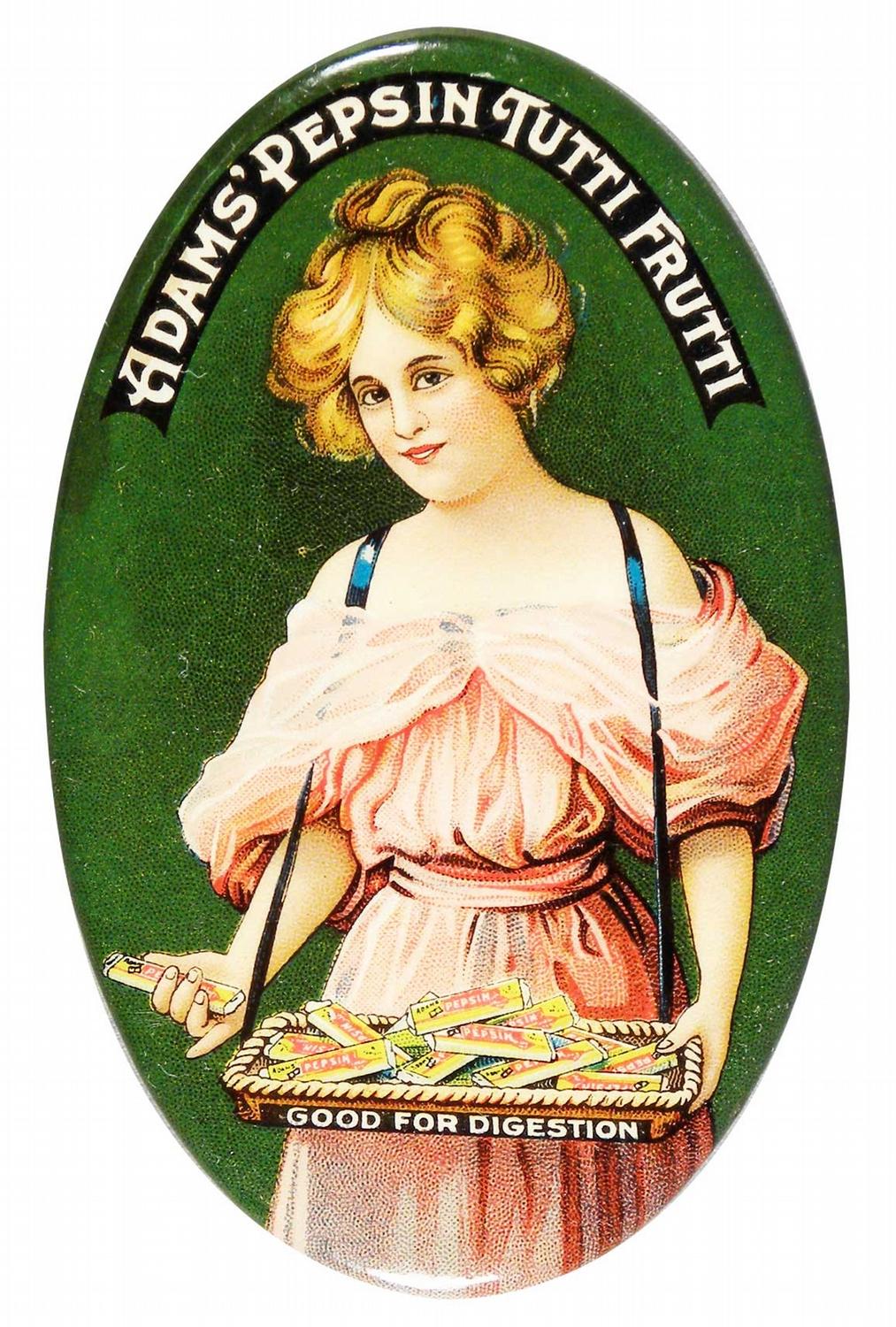 Adam's Pepsin Tutti Frutti Celluloid Pocket Mirror. Excellent condition. 1 3/4 X 2 3/4 inches.