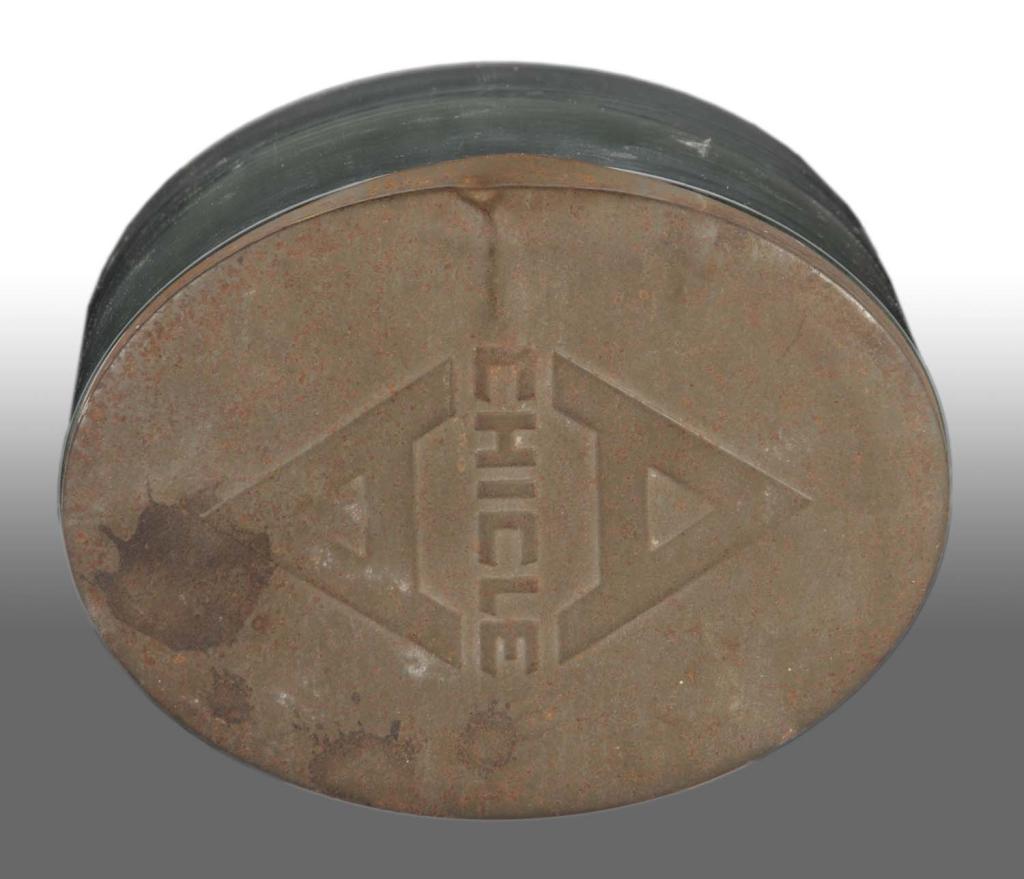 Description Circa 1900. Some edge roughness with surface rust and one dent to metal lid. Condition (Very Good). Size 7" T.