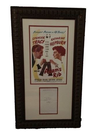 Adam's Rib framed mini poster with Katherine Hepburn's signature - Celebrate the golden age of Hollywood with this stunning framed mini poster from the timeless classic "Adam's Rib." This remarkable piece of memorabilia showcases the iconic film's artwork and is made even more extraordinary by the inclusion of a genuine signature from the legendary actress Katherine Hepburn. Complete with a Certificate of Authenticity (COA), this collectible treasure is a must-have for any movie enthusiast or Hepburn fan.