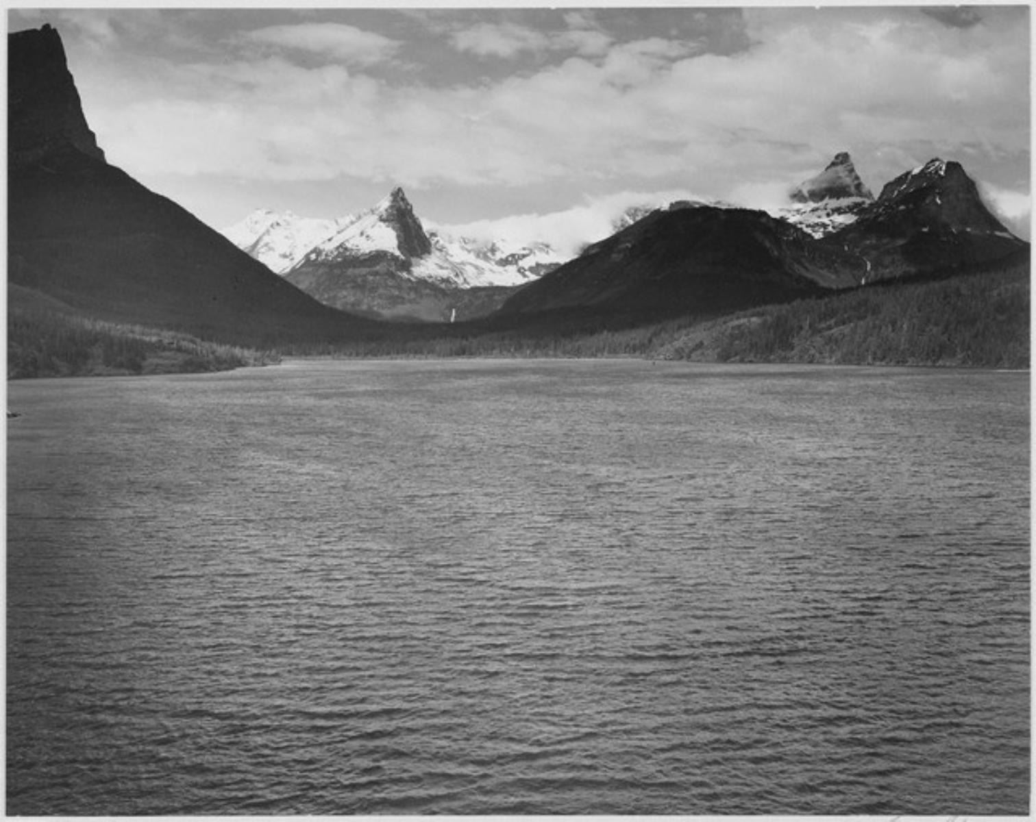 Artist: Ansel Adams - Title: Glacier National Park Montana - Medium: Fine Art Reproduction Giclee on Canvas - Image Size: Approximately 15.75 inches x 20 inches - Unframed on Unstretched Canvas - Biography: As a conservationist, writer, teacher, and photographer, Ansel Adams has been profoundly influential on future generations of artists, photographers, and environmentalists. There can be little doubt that he produced some of the most iconic images of the great American wilderness. Following in a long tradition of American landscape photographers, including Carleton Watkins, Eadweard Muybridge, Timothy O'Sullivan, and William Henry Jackson, Adams brought landscape photography into the realm of modernism by fusing technical precision with a profound and abiding love of the natural world. His work has inspired a range of artists and photographers working in the landscape tradition, from Eliot Porter and Robert Adams, to Edward Burtynsky and Richard Misrach. The subject of countless documentaries, books, essays, and exhibitions, Adams's images appear on living room and museum walls, proving that his photographs of the great American landscape continue to resonate.