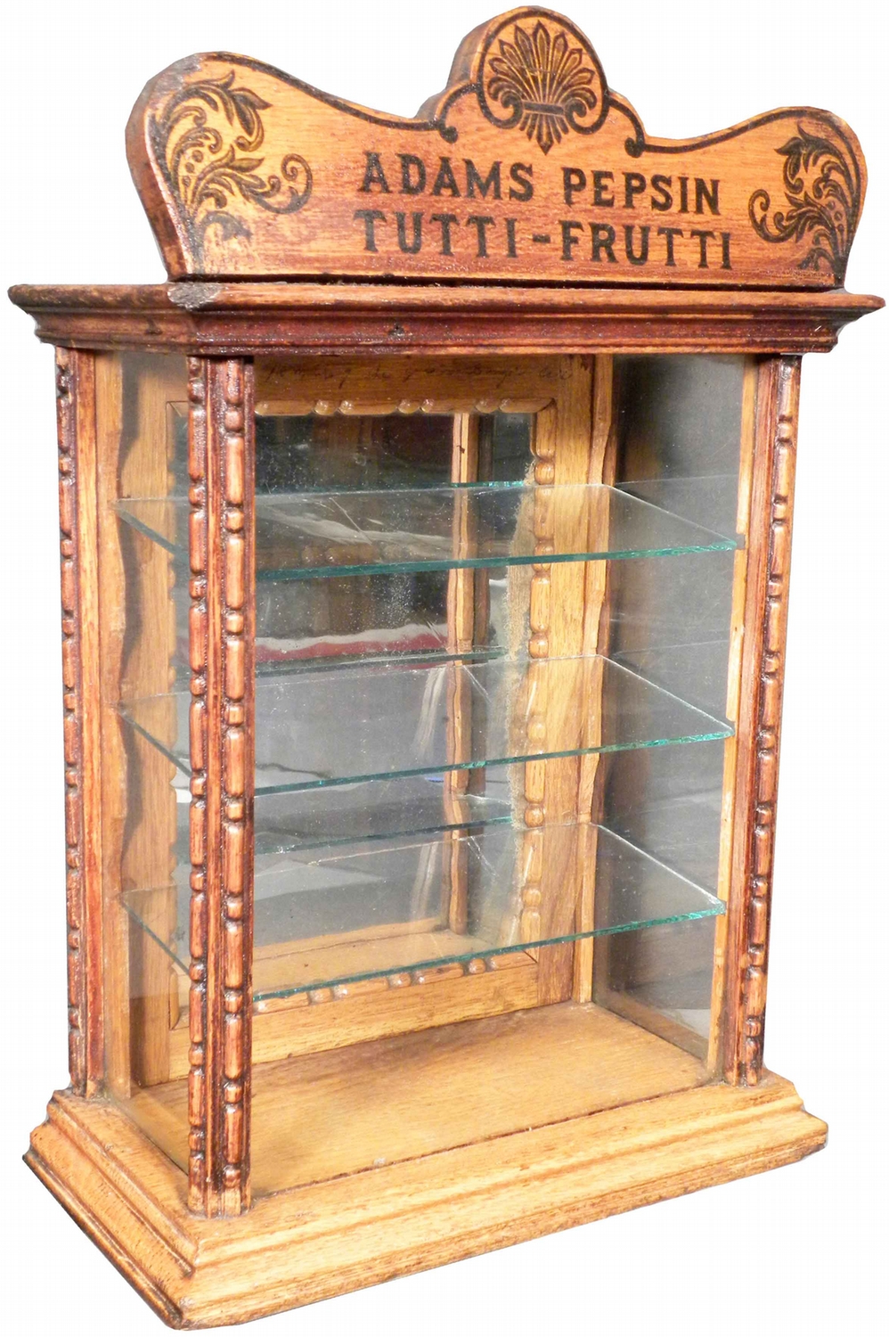 Adams Pepsin Tutti-Frutti Chewing Gum Oak Store Display Case. Comes with 2 glass shelves. Excellent original condition. 12 X 18 X 6 inches.