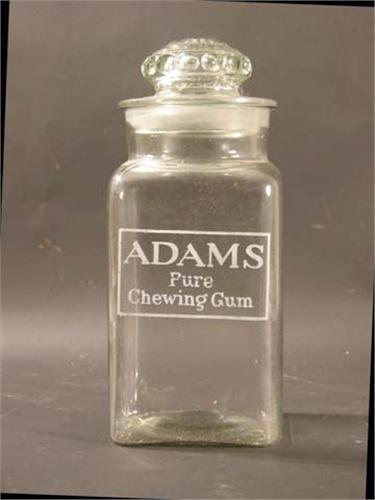Adam's Pure Chewing Gum jar - etched glass, 11.5" tall, ex. cond.