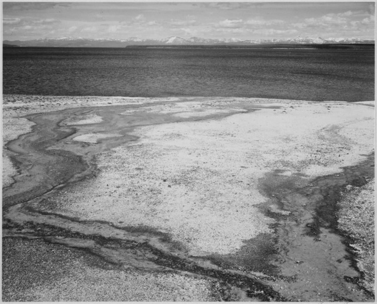 Artist: Ansel Adams - Title: Yellowstone Lake - Hot Springs Overflow - Medium: Fine Art Reproduction Giclee on Canvas - Image Size: Approximately 25.75 inches x 32 inches - Unframed on Unstretched Canvas - Biography: As a conservationist, writer, teacher, and photographer, Ansel Adams has been profoundly influential on future generations of artists, photographers, and environmentalists. There can be little doubt that he produced some of the most iconic images of the great American wilderness. Following in a long tradition of American landscape photographers, including Carleton Watkins, Eadweard Muybridge, Timothy O'Sullivan, and William Henry Jackson, Adams brought landscape photography into the realm of modernism by fusing technical precision with a profound and abiding love of the natural world. His work has inspired a range of artists and photographers working in the landscape tradition, from Eliot Porter and Robert Adams, to Edward Burtynsky and Richard Misrach. The subject of countless documentaries, books, essays, and exhibitions, Adams's images appear on living room and museum walls, proving that his photographs of the great American landscape continue to resonate.