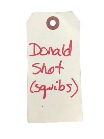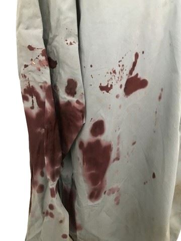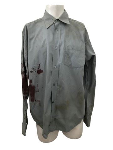 Adaptation. - Donald's (Nicolas Cage) screen worn, gray Banana Republic, squibbed dress shirt with blood stains throughout. Includes costume department wardrobe tag that says Donald shot (squibs).
