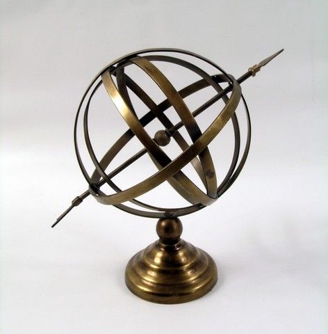 An unusual metal globe like statue with an arrow in the middle, used as a background prop set dressing In "Addams Family Values" (1993). (Approx. 11" tall).