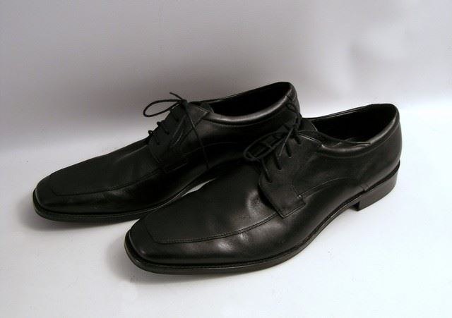 Jason Reynard (Boris Kodjoe) screen worn, hero, blue long sleeve button front dress shirt, navy with grey diagonal stripes neck tie, black leather belt, and black leather square toe lace up the front 'Gordon Rush' shoes. Includes wardrobe tag!