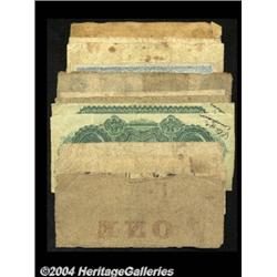 Additional Eastern Obsolete CurrencyJacksonville, FL - Bank of Jacksonville $5 Date ? G8 VGGreendale, MS - Mississippi and Tennessee Railroad Company 10ó Feb. 20, 1862 Leggett 9 VG (torn); $3 Feb. 20, 1862 Leggett 18 FineNatchez, MS - Mississippi Shipping Company $1 Date ? Leggett 59 VGElizabeth City, NC - Farmers Bank $2 Date ? VG (torn)Statesville, NC - Wallace Bros. 10ó 1882 Unc.Charleston, SC - Bank of the State of South Carolina $2 Mar. 4, 1862 G120 VG (tape)Charleston, SC - Office of the South Carolina Rail Road $2 Date ? Sheheen 316 VG POCColumbia SC - Charlotte, Columbia and Augusta Rail Road $2 Oct. 1, 1873 Sheheen 329 VF (grafitti); $5 Oct. 1, 1873 Sheheen 329 VF (grafitti)Chattanooga, TN - Bank of Chattanooga $1 August, 1861 G14b VG; $1 Aug. 28, 1861 G14a VG; $2 Aug., 1852 G36e VGCleveland, TN - Ocoee Bank $1 Nov., 1859 G-VG 13 notes <BR><BR><B>Important notice:</B> Heritage usually auctions material at the rate of 200-250 lots per hour. On some occasions eBay Live bid software or the Internet may not be able to keep up with the pace of the auction. We recommend placing a realistic absentee bid now as insurance to avoid disappointment. Occasionally the auctioneer may eliminate or reject an eBay Live bid, and the auctioneer may also reopen a lot after the close of the eBay live bidding (usually because we missed an audience bid), and may reject your bid even if it shows you as the winning bidder. By bidding via eBay Live, you agree that Heritage may award the lot to another bidder at its sole discretion under the circumstances described above or any other reasonable circumstances. Since eBay bids are not shown to us until we open the lot on the floor, we treat those bids just like floor bids. In most cases the floor responds before the eBay bid is presented to us, due to Internet lag time, so for consistency we have made it a policy that floor bids are always considered first over tie eBay live bids. Also please note that all Heritage lots purchased through eBay Live carry a 20% Buyer's Premium. Please make sure you read the Terms and Conditions before you bid. <BR><BR><B>IMPORTANT ANNOUNCEMENT ABOUT RESERVES:</B> Heritage now divulges all reserves on its web site 7 days before every auction. If you want to know whether the reserve on this lot has been met, and if not, what the reserve amount is, please visit this lot page on the HeritageCoin.com web site, or email: bid@HeritageGalleries.com