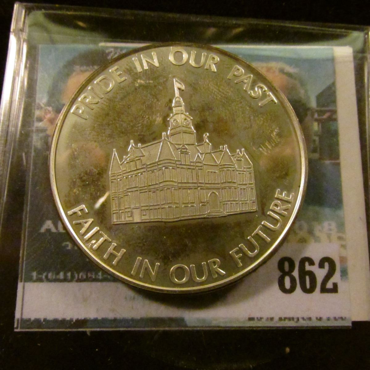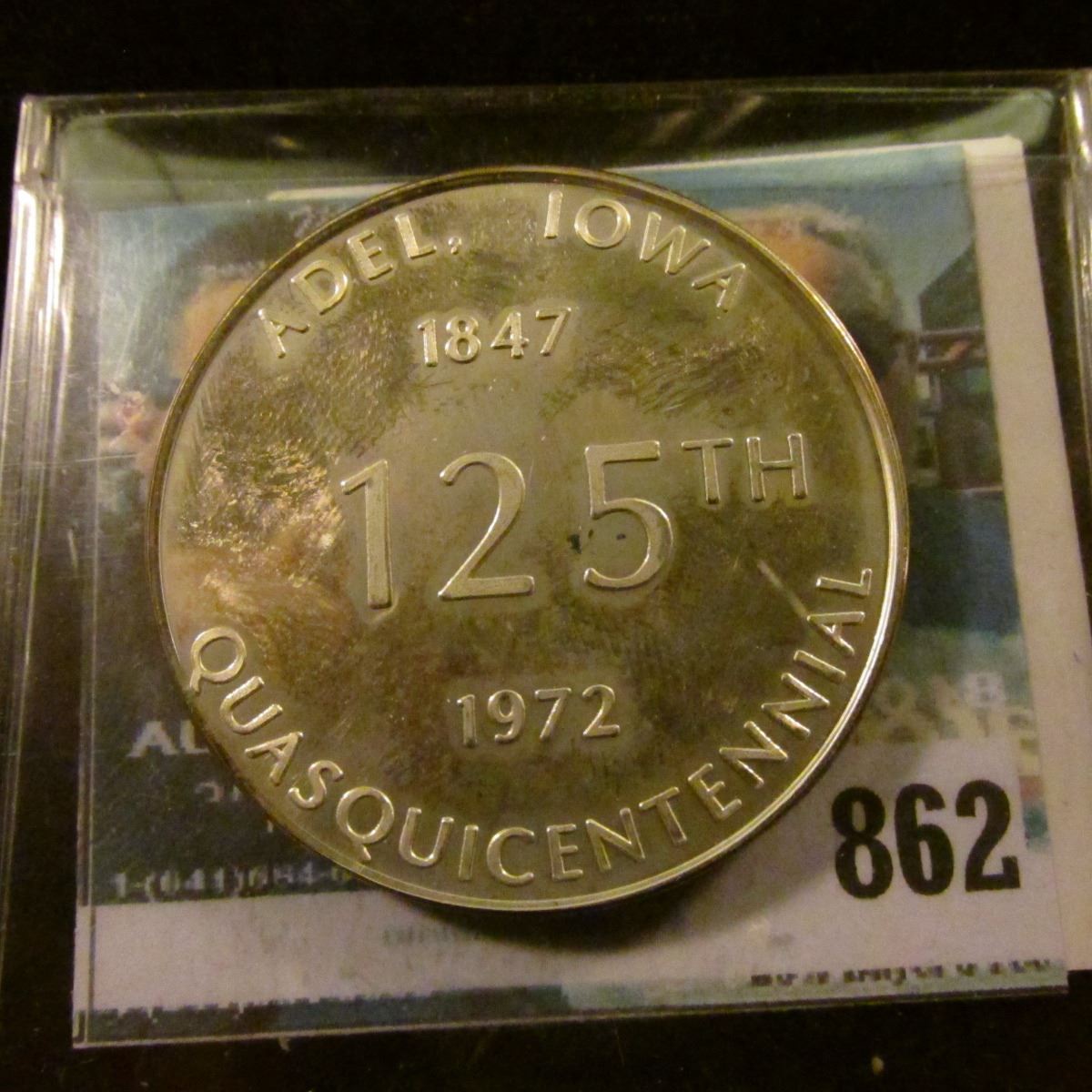 "Adel, Iowa/1847/125th/1972/Quasquicentennial", "Pride In Our Past/Faith in our Future", Serial # 179, Sterling Silver, Brilliant Uncirculated. 39mm.
