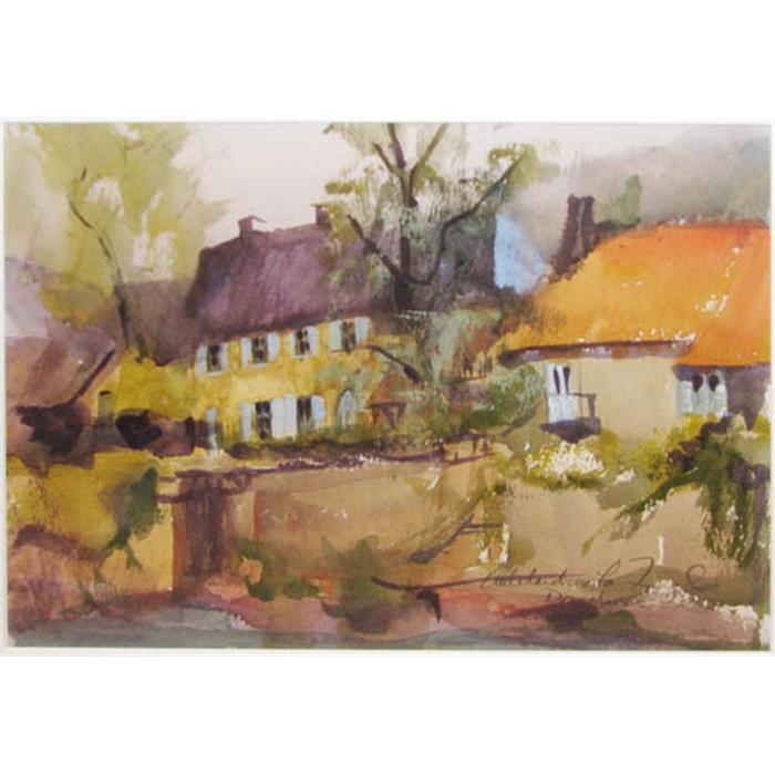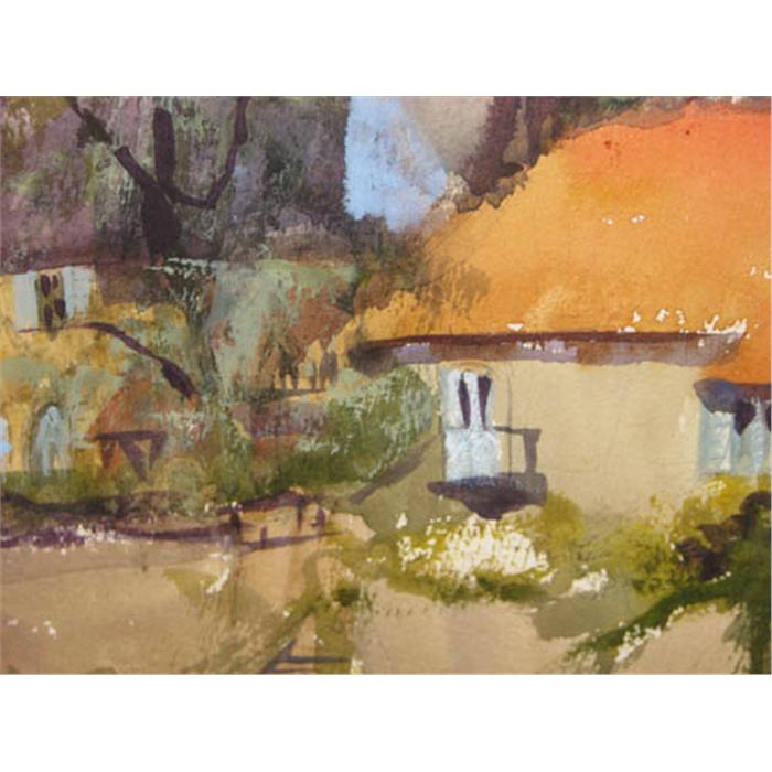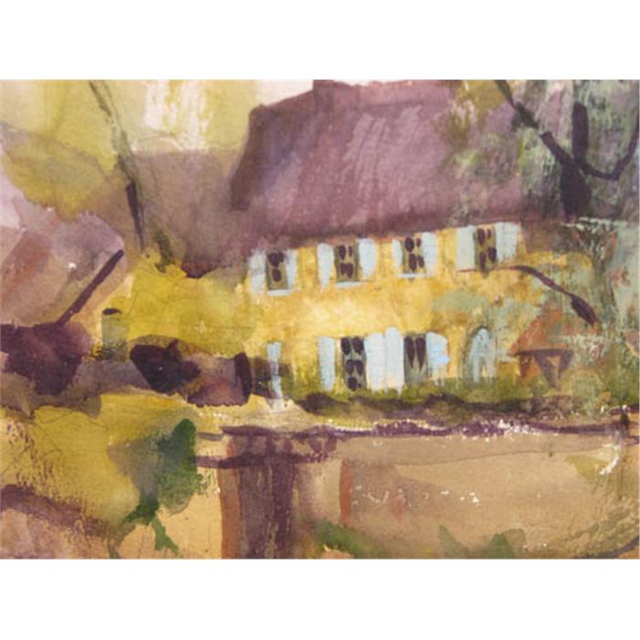 Adelaide LeFond watercolor of Farm Buildings