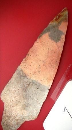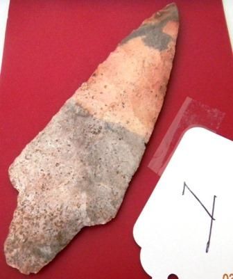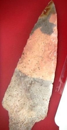 Adena Spear Blade, Mozarkite, found in Missouri which measures 5 1/2 x 2 inches. The item is late Archaic to Woodland Period. Good Condition. Shipping $15.00