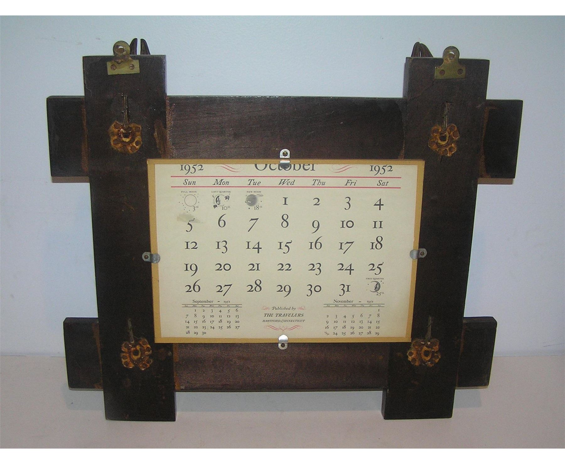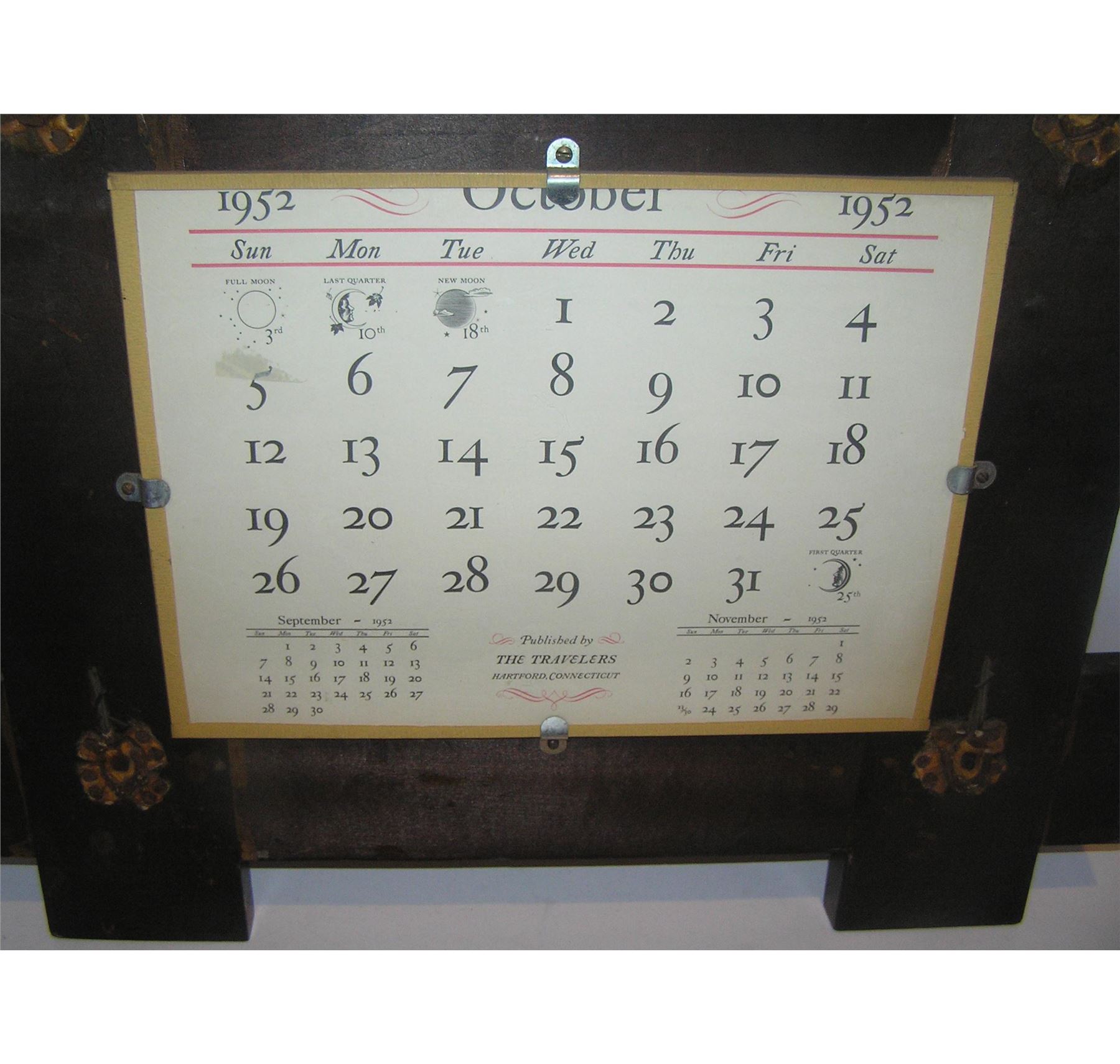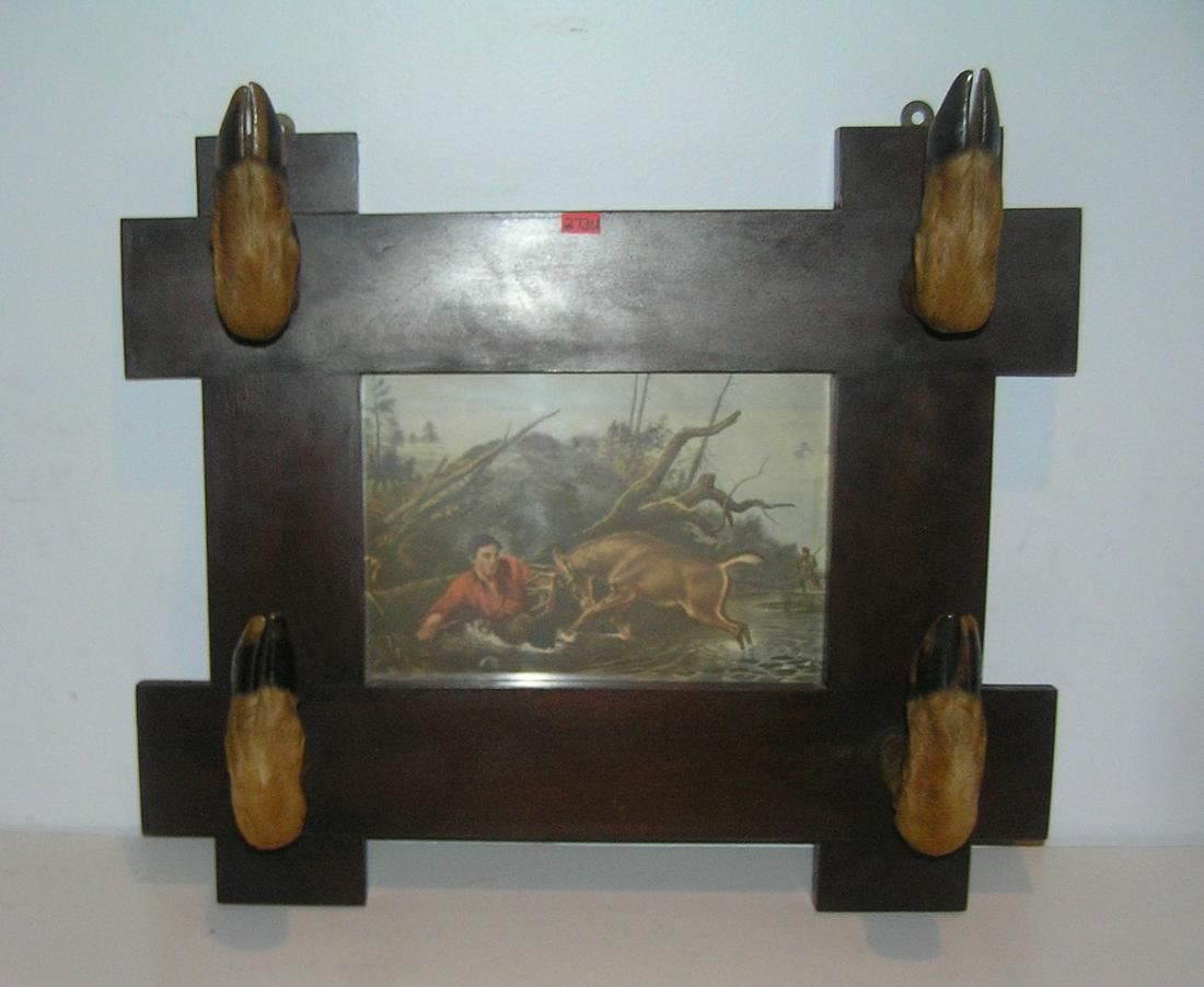 Great early Adirondack style deer hoof decorative gun rack with 1952 calendar back circa early 1950's est. value $325.00-$350.00