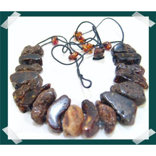 The necklace is approximately 9" of amber with completely adjustable according to your needs. and a gram weight of 46. The center amber measures 26mm or slightly more than 1" taper to the smaller one at the end measure 25mm! The necklace is very versatile for one side is raw and the other quite highly polished and in my opinion it could be worn either way!
