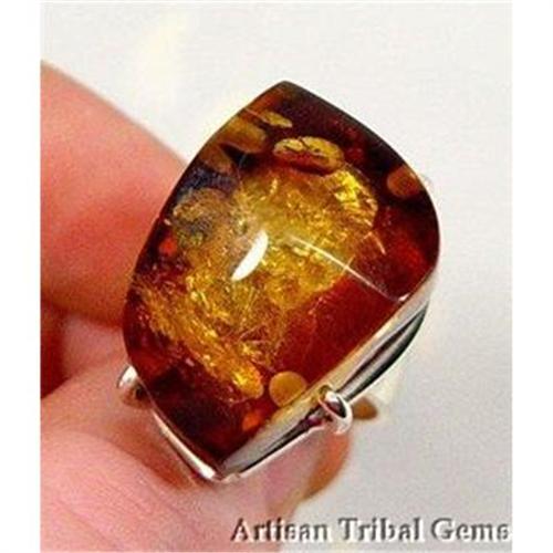 Winning Combo of Genuine NATURAL BALTIC Amber complimented with the finest Sterling silver creates a ring worthy of consideration! Hallmarked 925 sterling....The face of the ring has measurements of 27x22x20mm. For those not familiar with metric 25mm=1". The Polish artist has chosen sterling silver with a simplicity of design leaving the natural amber stone to shine! A piece of jewelry executed to perfection. The ring is impressive and full of glorious inclusions with a gram weight of 17.3. Is adjustable down to a size 8.5. (d1074)