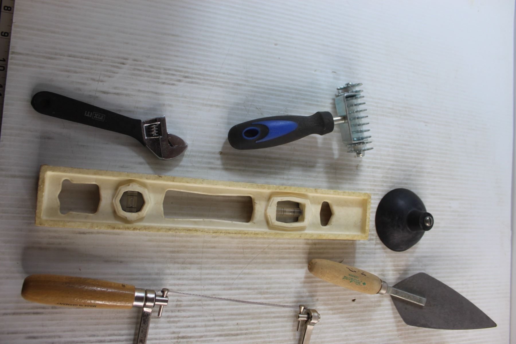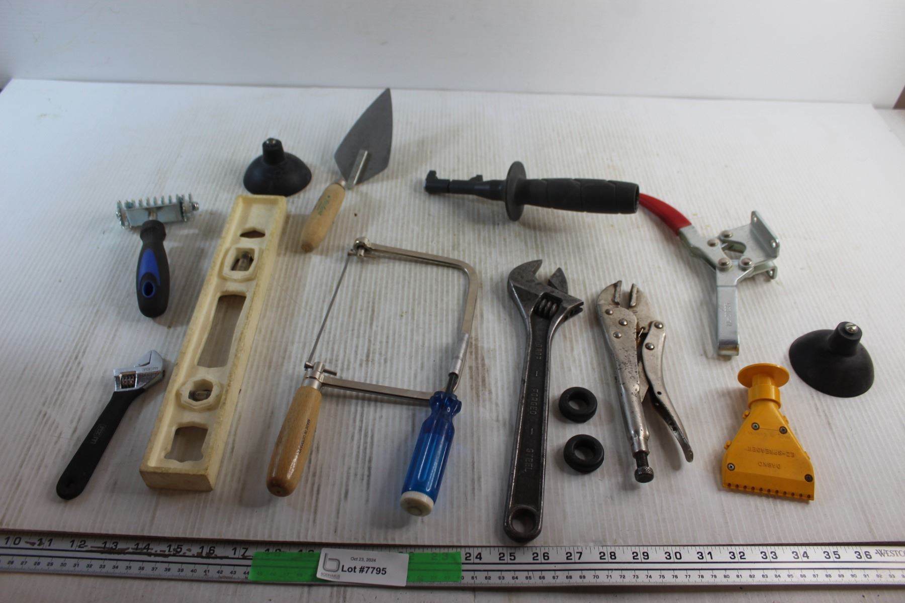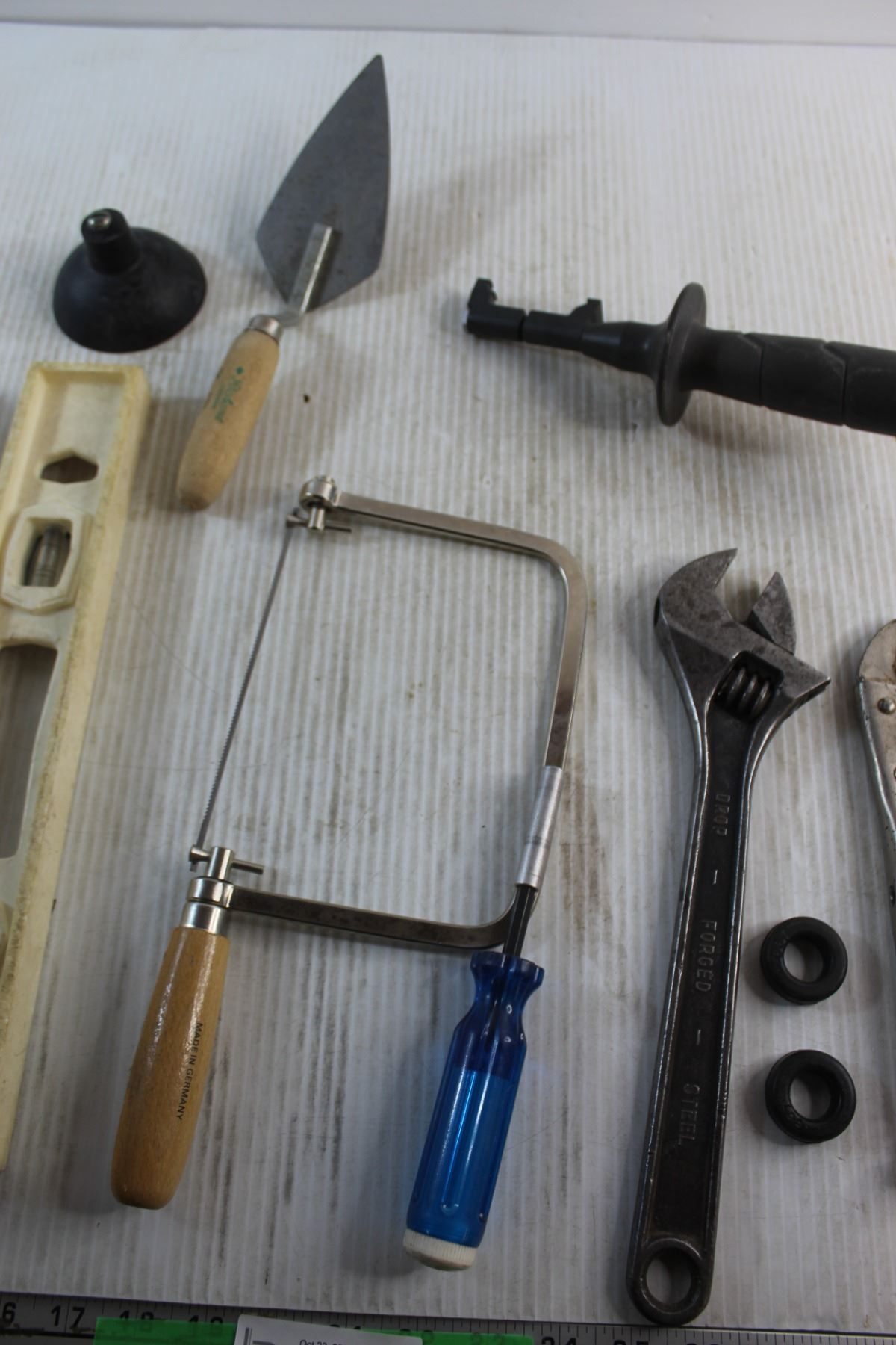Adjustable Wrenches, Spirit Level, Hand Saw, Dry Wall Tools and Assorted Items