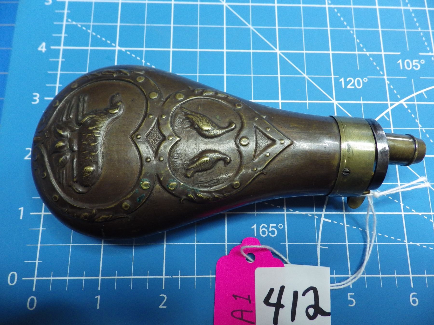 Adjustable copper powder flask, body is 5"x3", spring works -- CONSIGN # A1