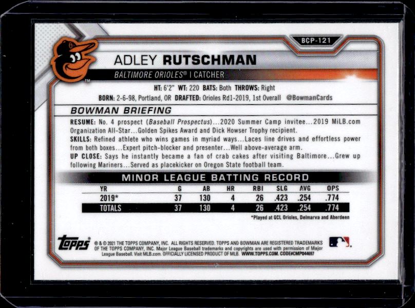 Adley Rutschman 2021 Bowman Chrome Prospects #BCP-121
