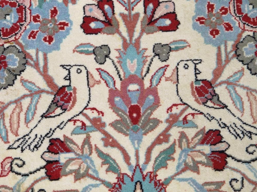 Rug: Handmade Floral Persian Qum Design; Material: Quality wool pile; Size: 2.10 x 1.10 feet; Foundation: Cotton; Design: Persian Qum; Origin: Nepal