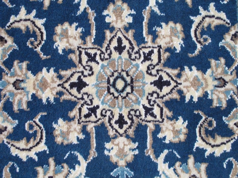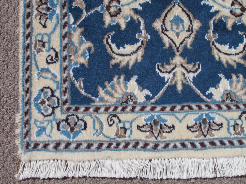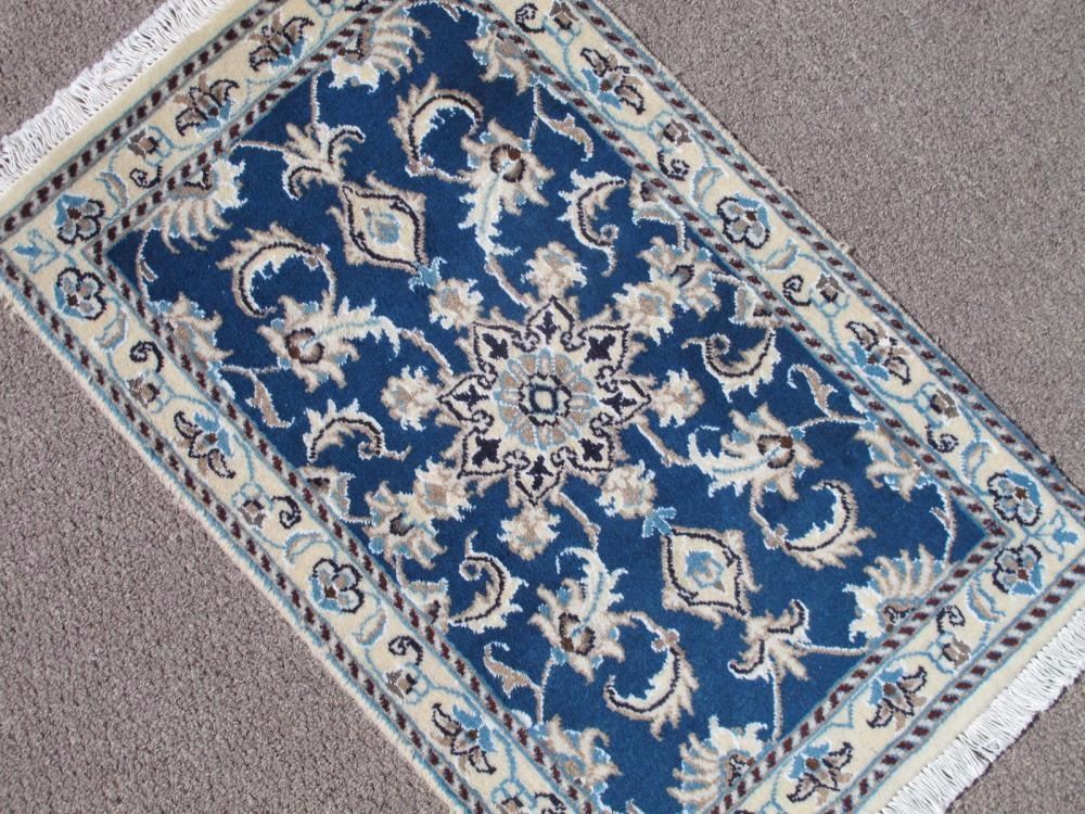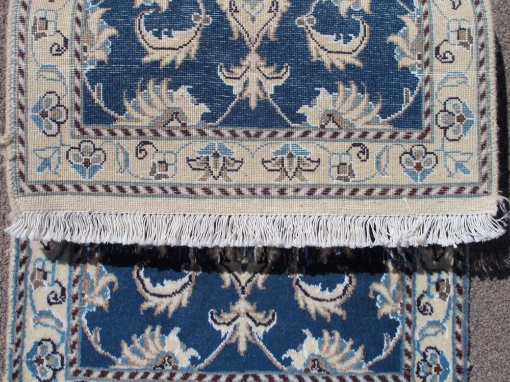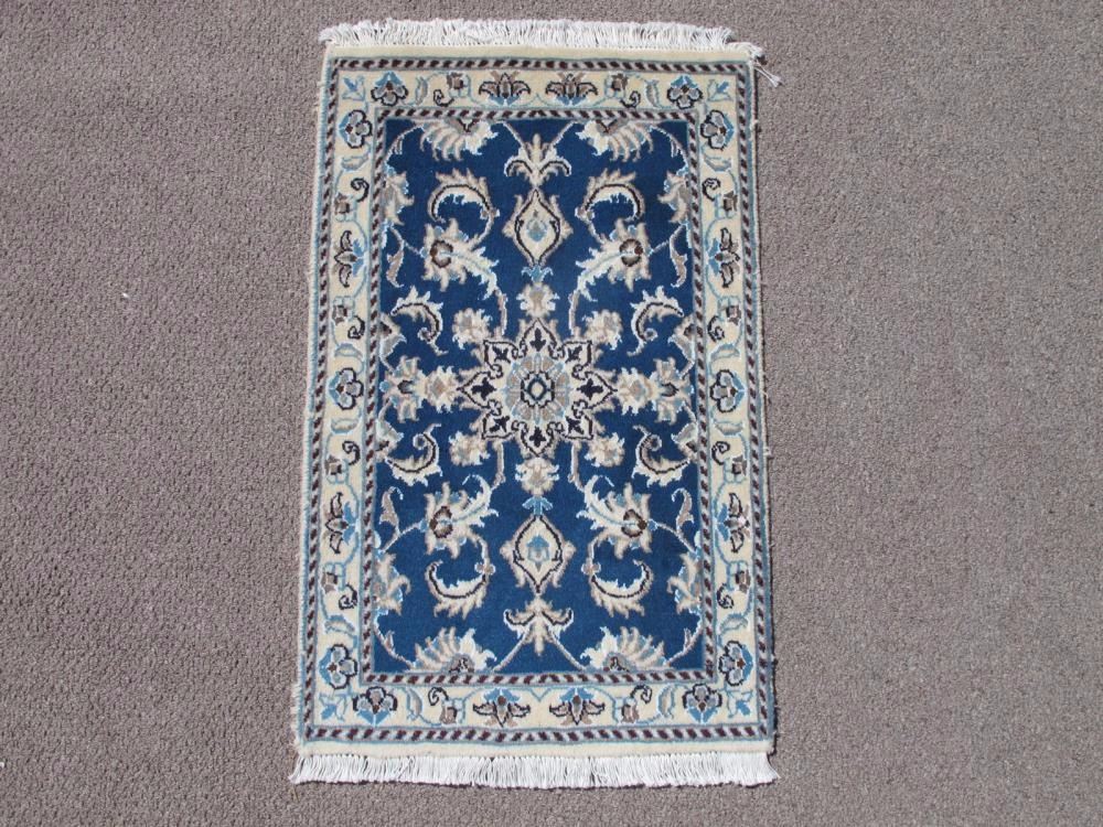 Rug: Handmade Wool and Part Silk Persian Nain; Material: Made of the finest baby lamb's wool and part pure silk pile, all natural vegetable dye ; Size: 2.10 x 1.10 feet; Foundation: Cotton; Design: Persian Nain; Origin: Iran