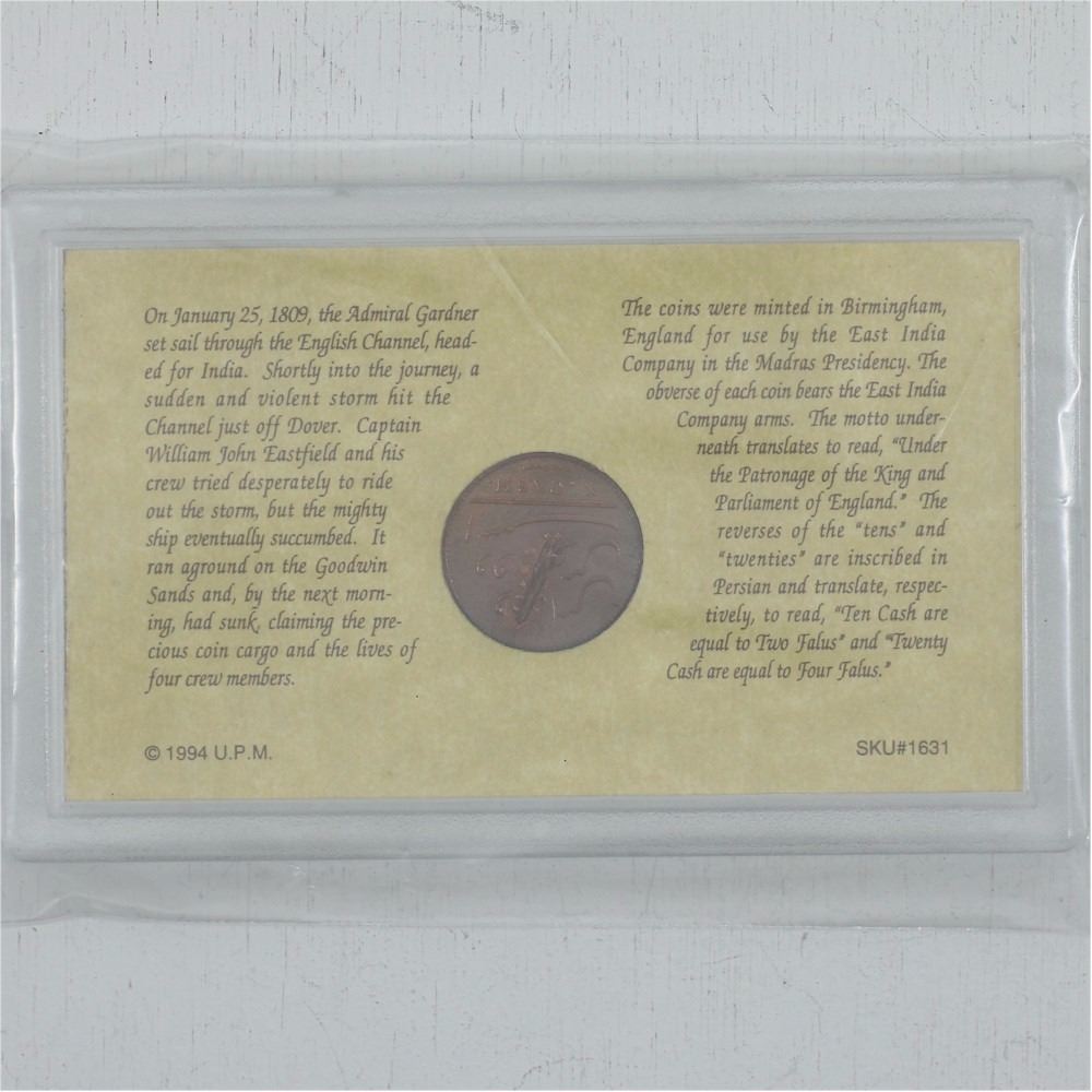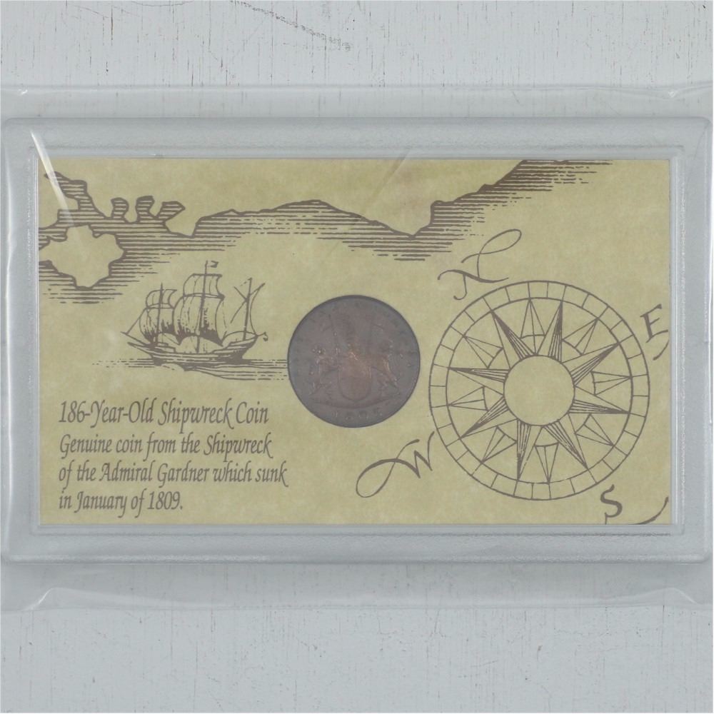 Admiral Gardner 186th Year of the Shipwreck Coin in hard plastic display with informational card.