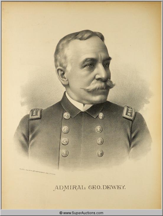 Admiral George Dewey 1837-1917 Historical Print / Kurz & Allison - Art Studio, Chicago / Bent Edges, Light Stains {21" L x 27" H}