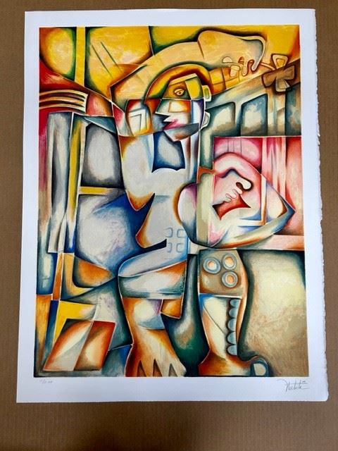 A color lithograph 30.5x23.5", hand-pulled in a Paris studio in Montmarte that Chagall worked at. We have Artist Proof 15/15.