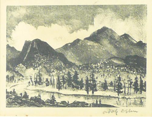 Adolf Dehn (1895-1968) Lithograph "Rocky Mountains" Signed lower right 1946 4 7/8" x 3 7/8"