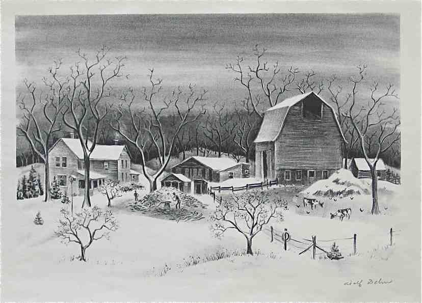 Adolf Dehn Signed Original Lithograph Winter Scene - Signed In Pencil. Printed During The 1950's On Wove Paper. Condition: Some Minor Age-Toning And Handling Creases, And Foxing On The Back. Sheet Size: 12 X 16 Inches, With Full Original Margins - Professionally Framed & Matted - Comes With Certificate - -