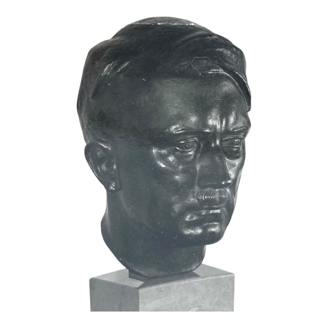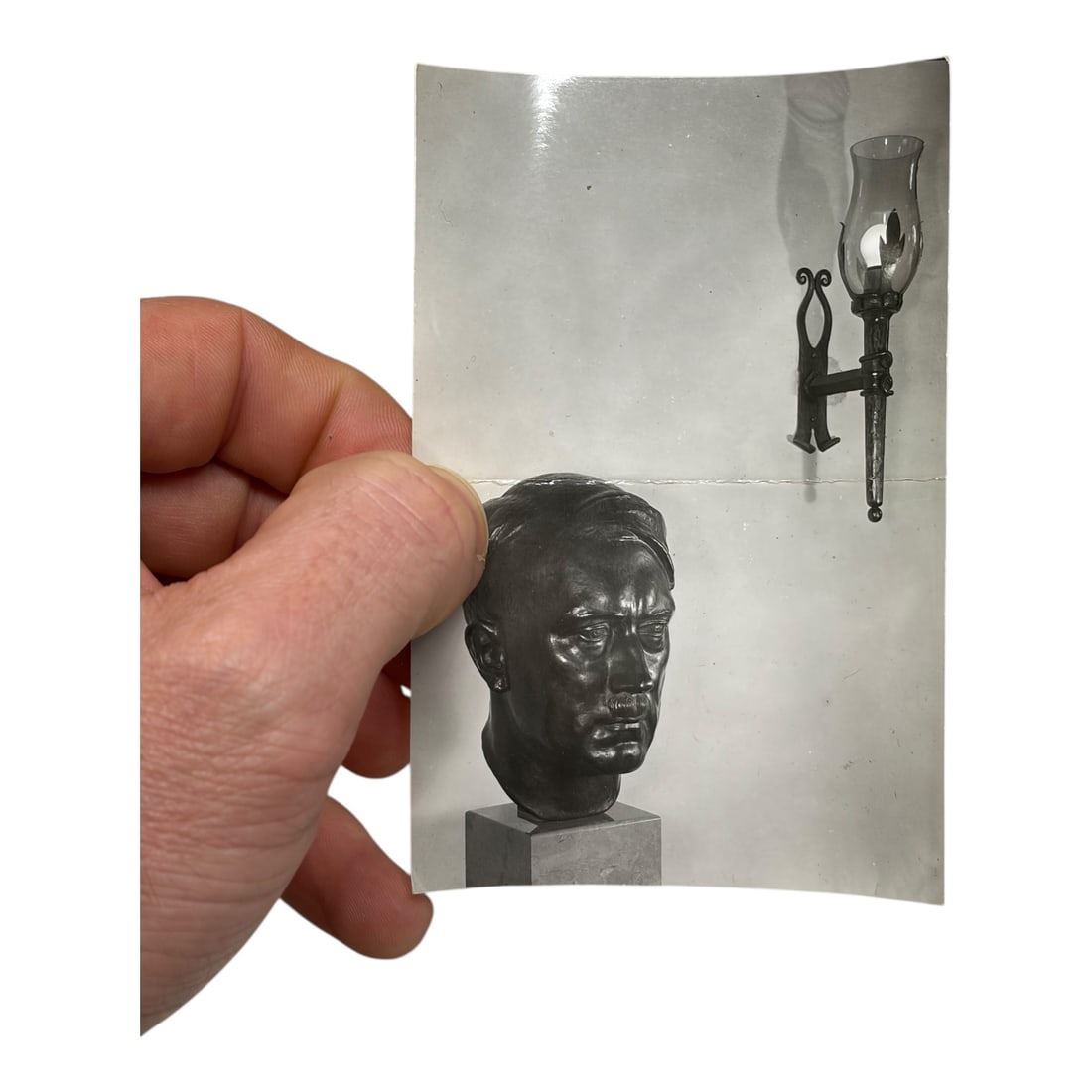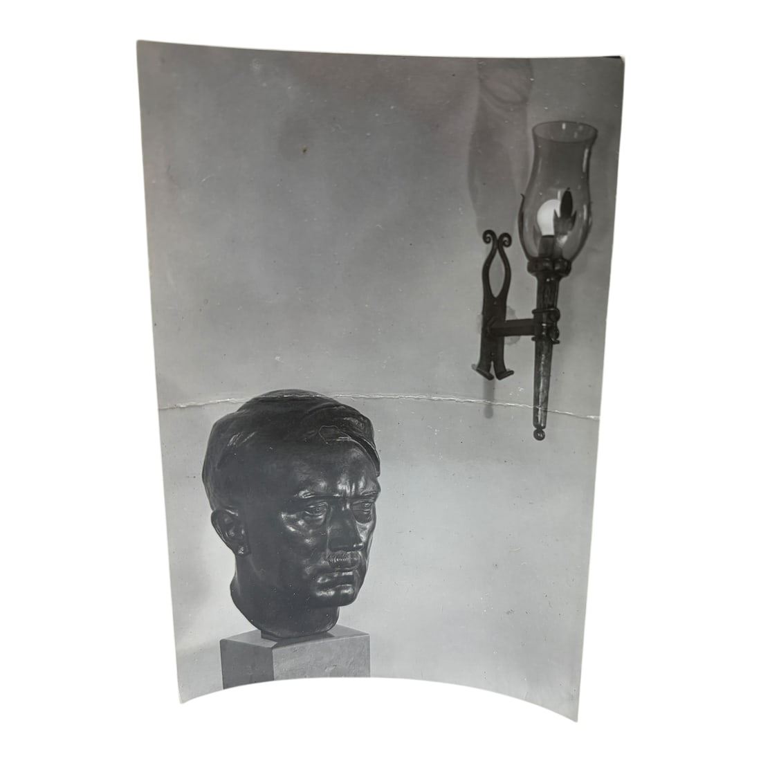 Adolf Hitler Bronze Bust by Ferdinand Liebermann 2x Lifesize. Bust stands roughly 16.5 inches tall, weighs about 40 pounds. Ultra desirable and rare artist, you'll rarely find a 2x Liebermann Bronze of Hitler. These were considered among top of the line in the days of the Third Reich. What is super cool about this one is that is was cast in the Netherlands, which is where we purchased it from. Produced in the Netherlands by the N.V. Witmetaalfabriek in Loosduinen-Leiden. Bust is also marked with AFD. Kunstgieterij, which is the department for art where it was molded. Included is an original period photo from an SS training camp in the Netherlands showing what is an identical bust on display. It's doubtful more than a couple Liebermann busts were commissioned in the Netherlands.