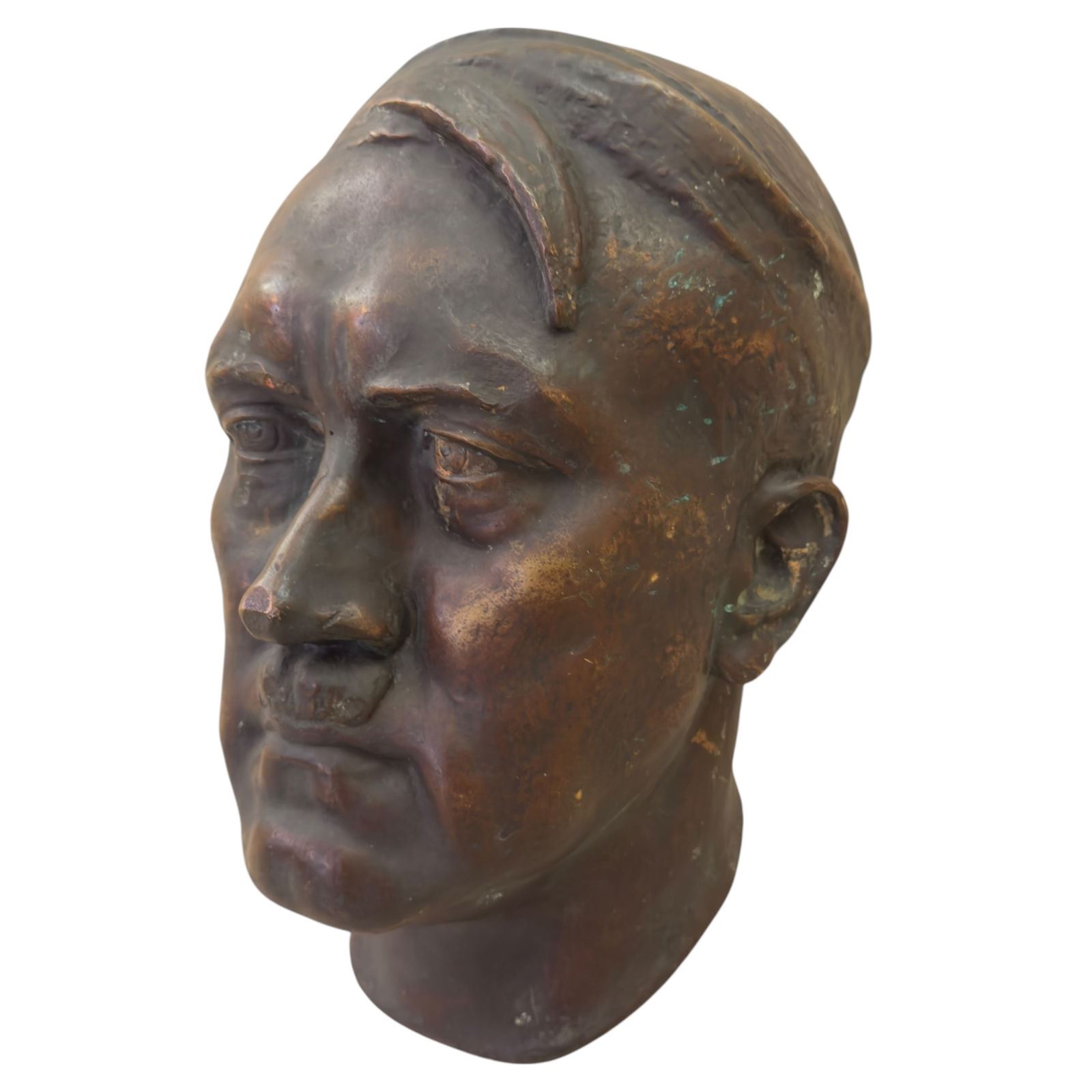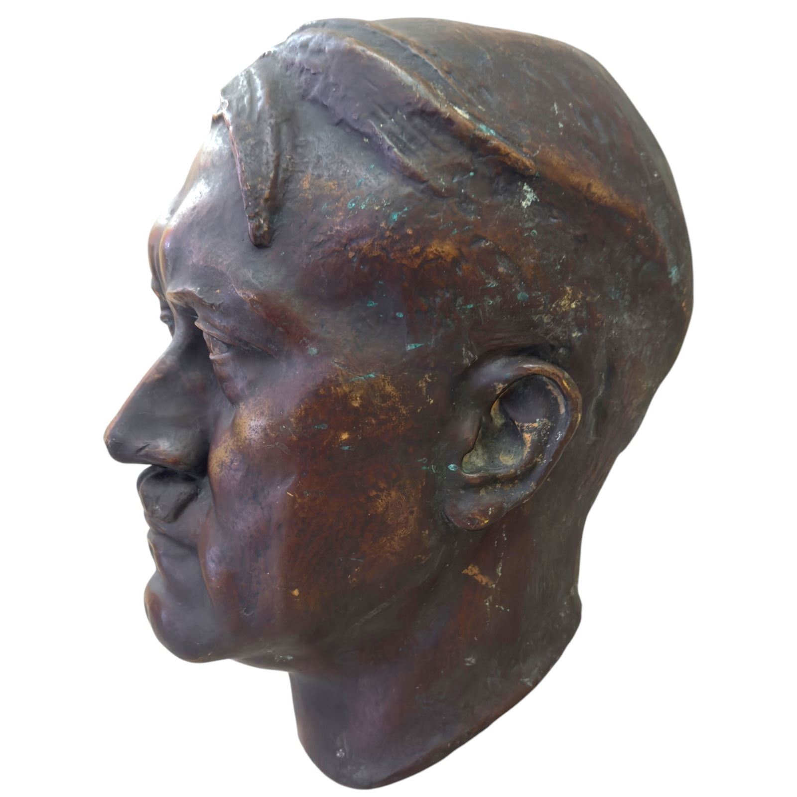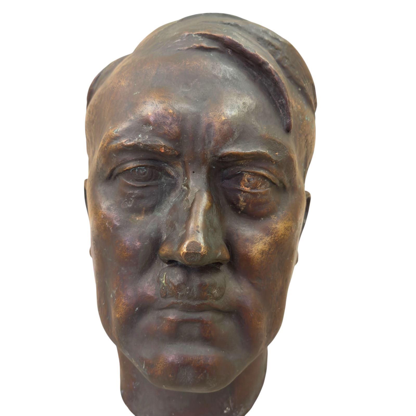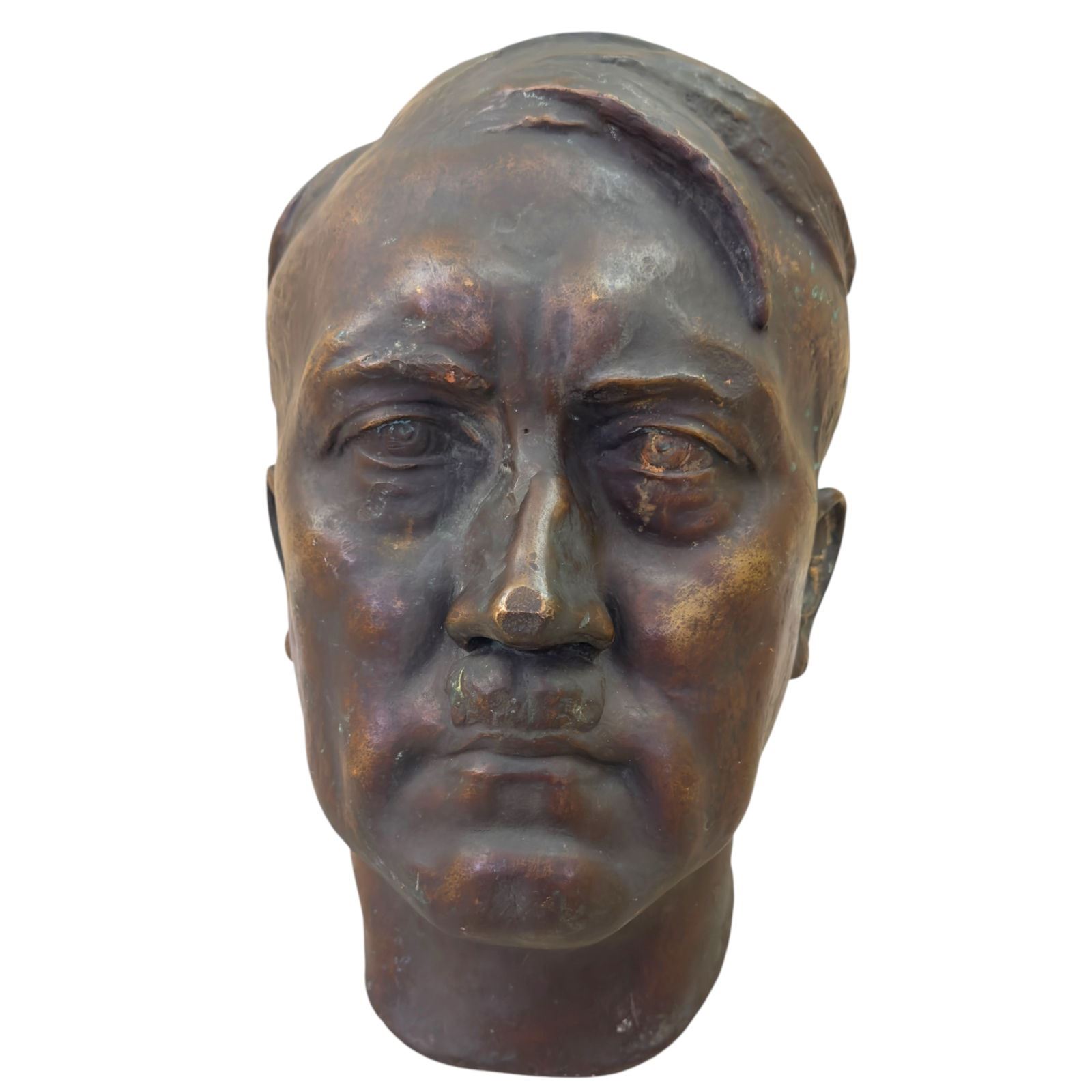Adolf Hitler Bronze Bust by Ferdinand Liebermann 2x Lifesize. Bust stands roughly 16.5 inches tall, weighs about 40 pounds. Ultra desirable and rare artist, you'll rarely find a 2x Liebermann Bronze of Hitler. These were considered among top of the line in the days of the Third Reich. What is super cool about this one is that is was cast in the Netherlands, which is where we purchased it from. Produced in the Netherlands by the N.V. Witmetaalfabriek in Loosduinen-Leiden. Bust is also marked with AFD. Kunstgieterij, which is the department for art where it was molded. Included is an original period photo from an SS training camp in the Netherlands showing what is an identical bust on display. It's doubtful more than a couple Liebermann busts were commissioned in the Netherlands.
