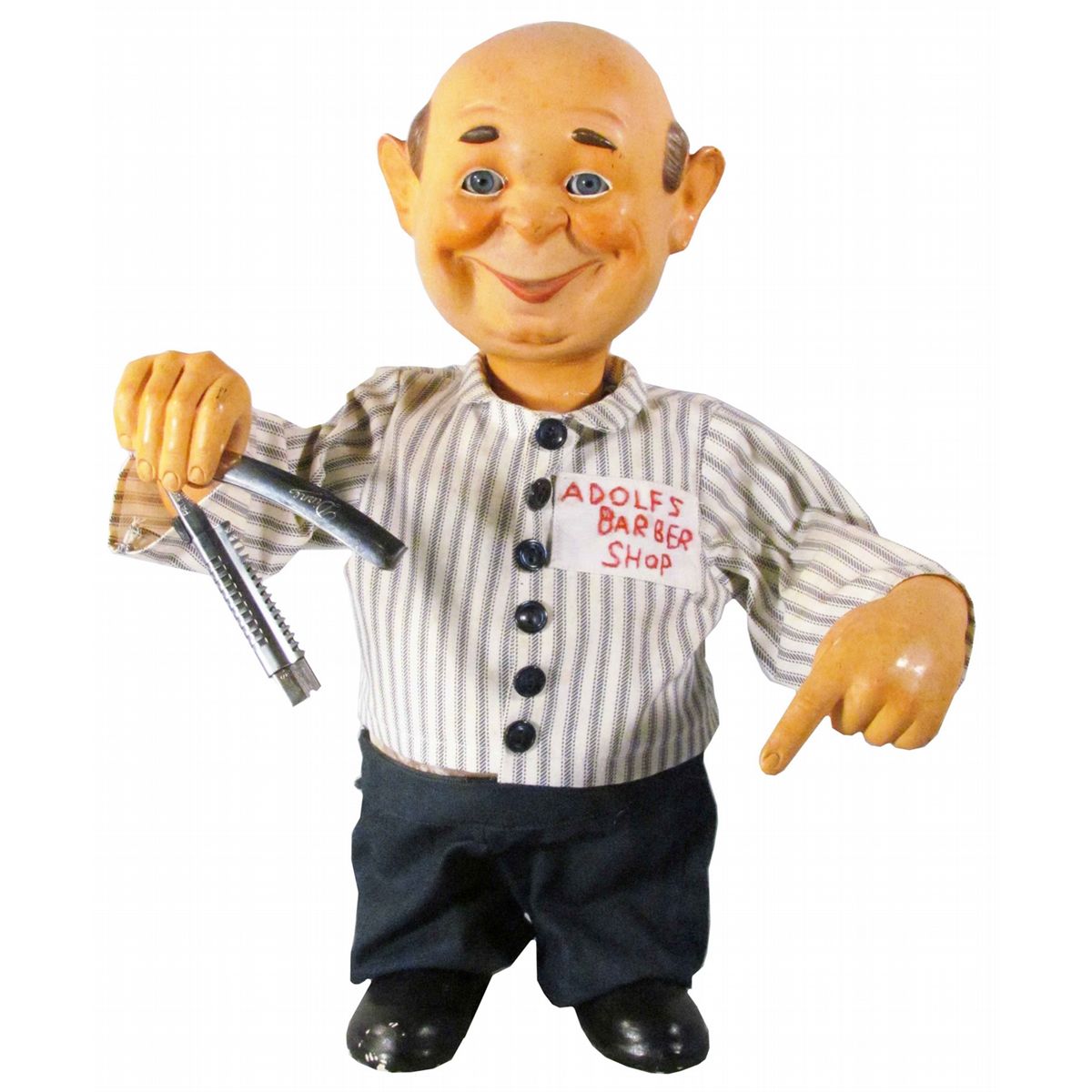 Adolf "The Barber" Automaton. Clockwork mechanism. Porcelain & Glass. Excellent working condition, comes with key. 17 1/2 inches tall.