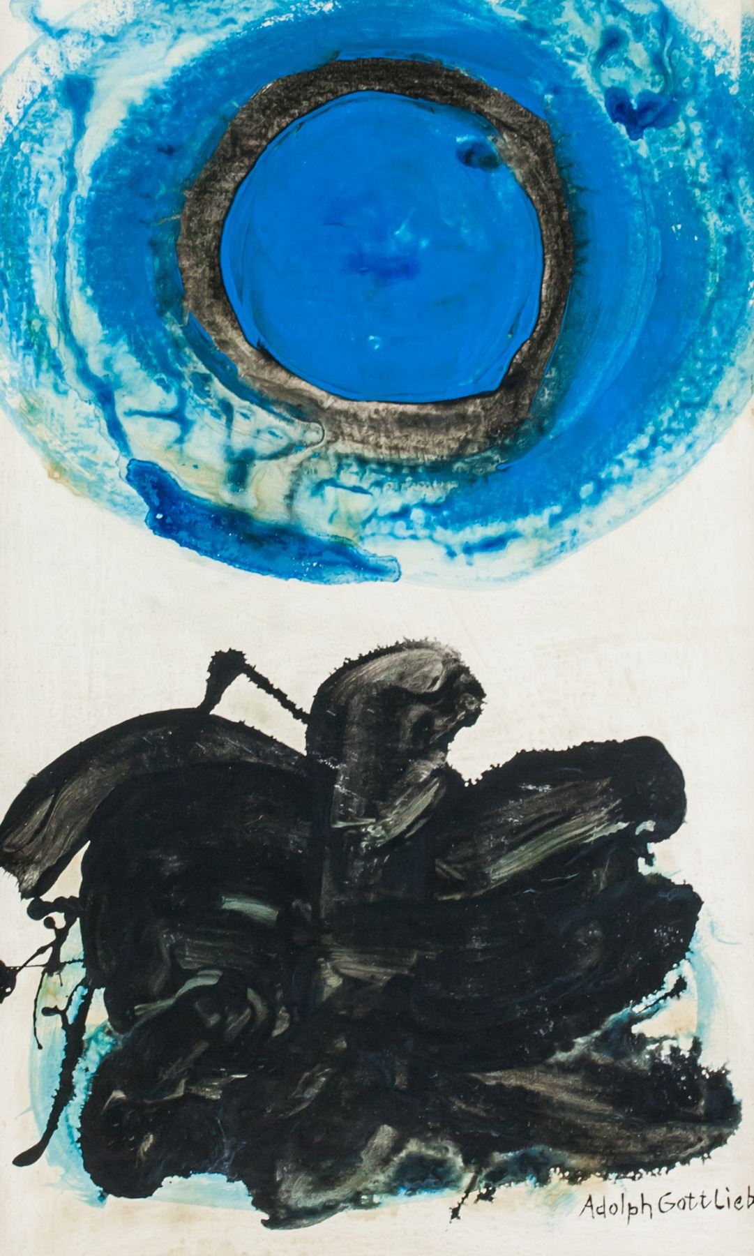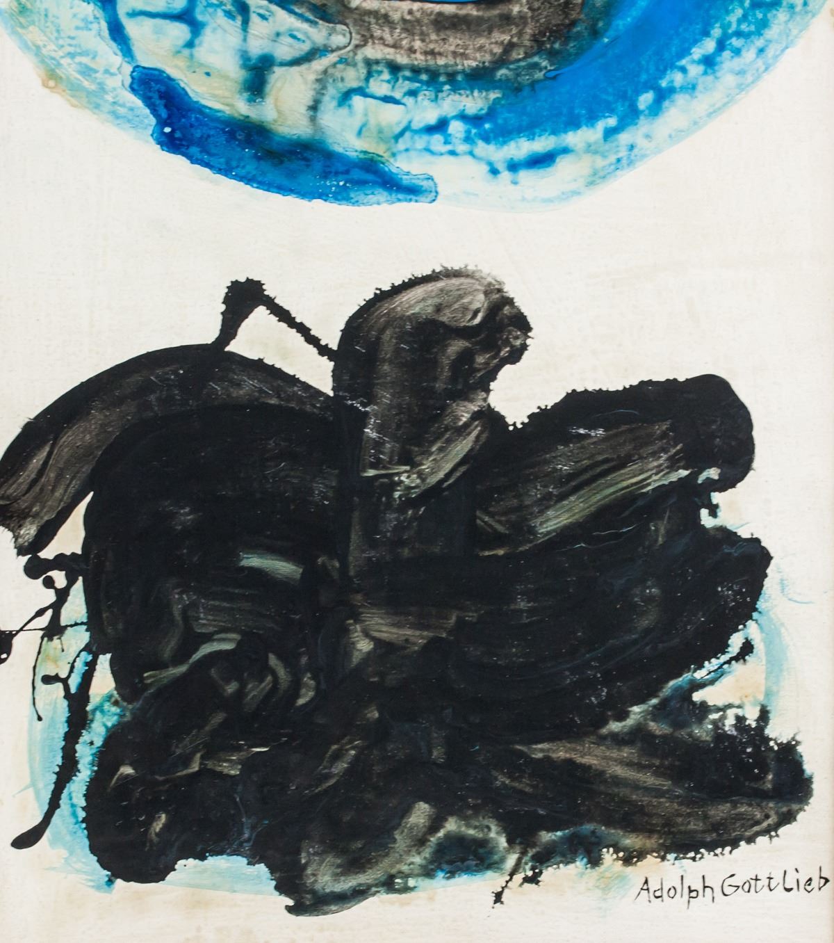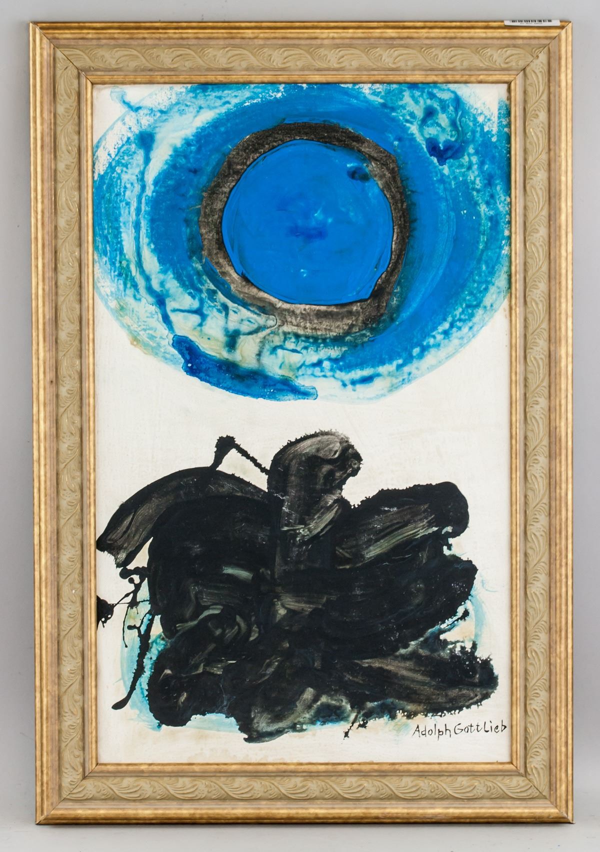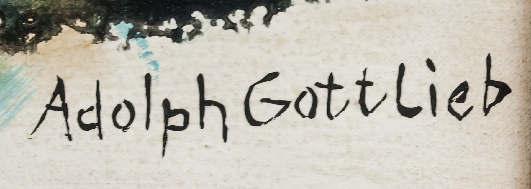 Oil on canvas, stretched and framed. featuring an abstract expressionist composition. Signed Adolph GottLieb on the lower right corner. Attributed to Adolph Gottlieb (1903-1974, American). 55.5 x 34 cm (21.9 x 13.4 inches). Framed size: 65 x 44 cm (25.6 x 17.3 inches). PROVENANCE: Southern Ontario estate