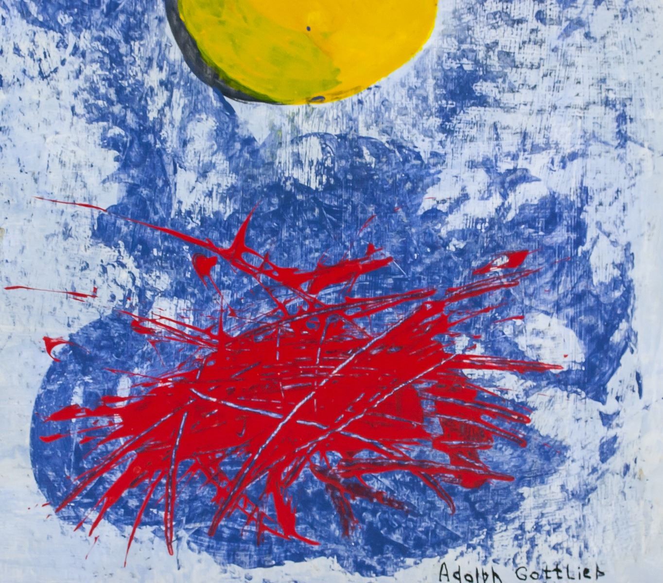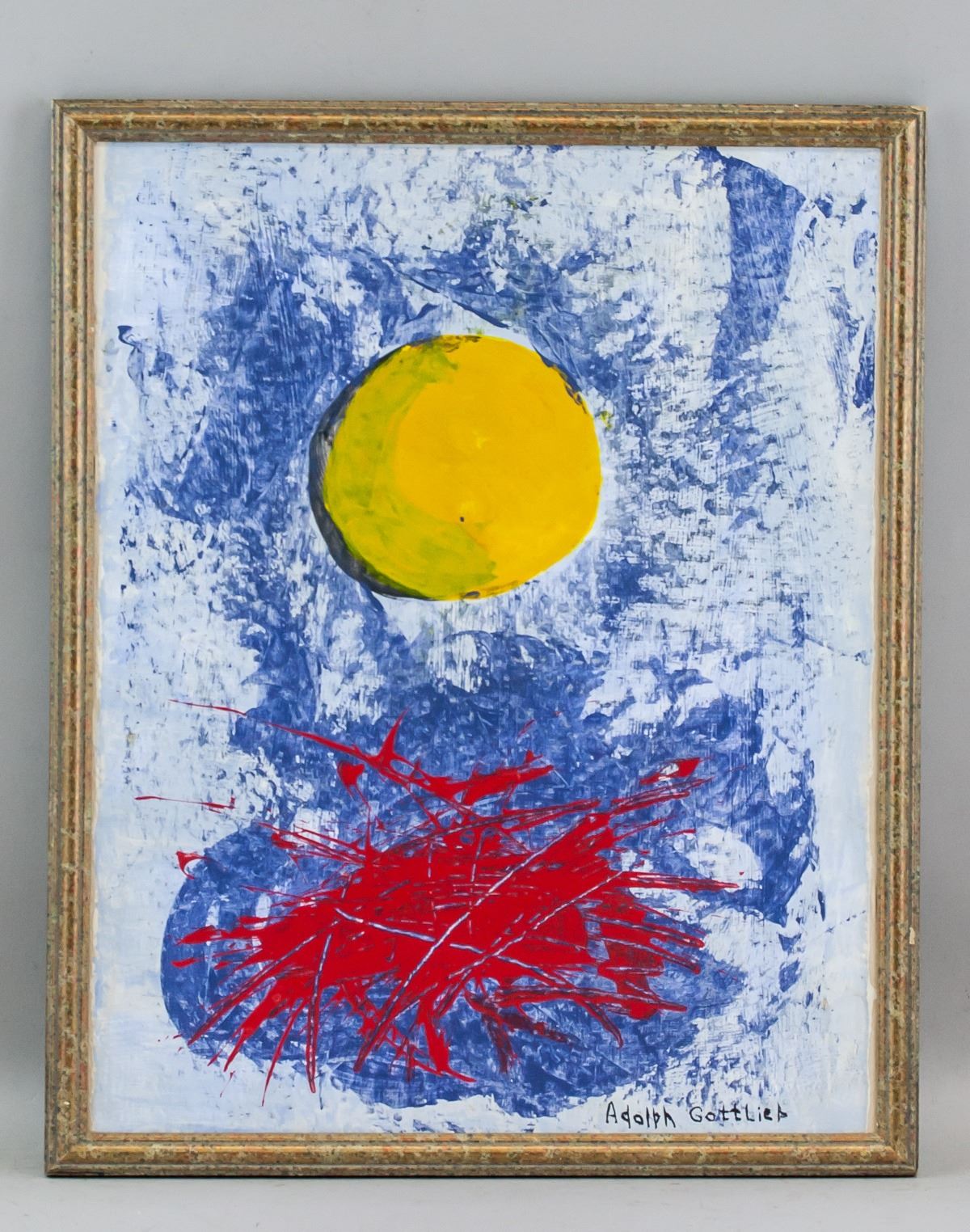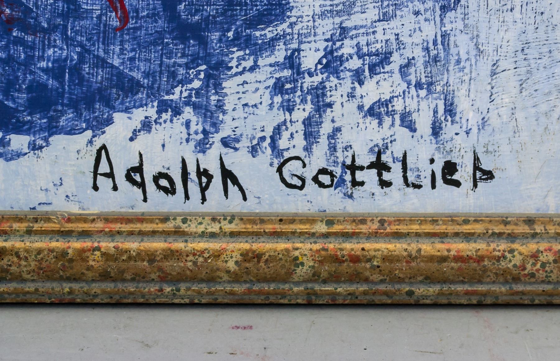 Oil on canvas, framed. Featuring an abstract expressionist composition. Signed Adolph Gottlieb on the lower right corner. Attributed to Adolph Gottlieb (1903-1974, German-American). 45.5 x 36.5 cm (18 x 14.5 inches). Framed size: 49 x 40 cm (19.25 x 15.75 inches). PROVENANCE: This lot carries limited provenance from a Southern Ontario estate