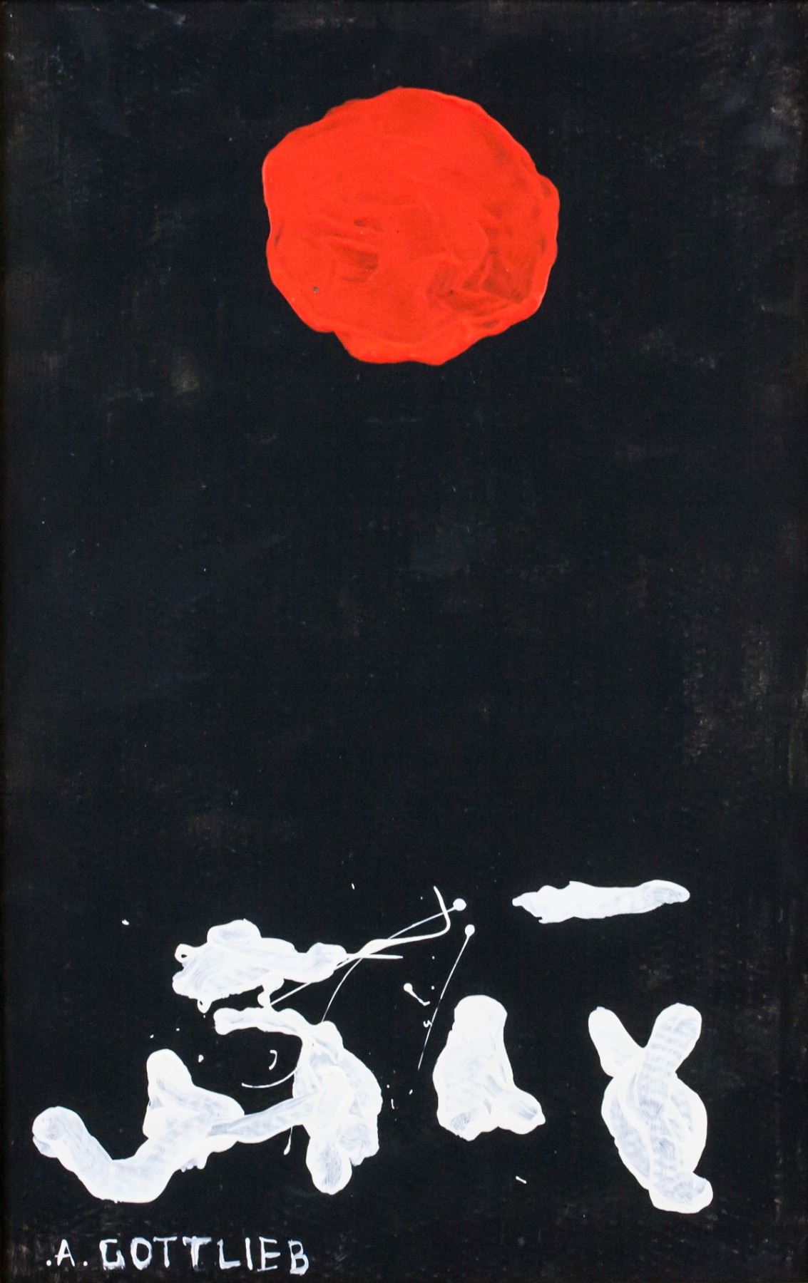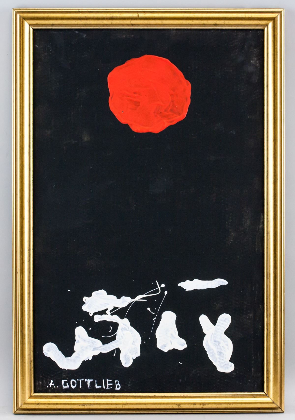 Oil on canvas, framed. Featuring an abstract expressionist composition. Signed A. GOTTLIEB on the lower left corner. Attributed to Adolph Gottlieb (1903-1974, American). 56 x 34 cm (22 x 13.5 in), Frame: 62 x 42 cm (24.5 x 16 in). PROVENANCE: Southern Ontario estate