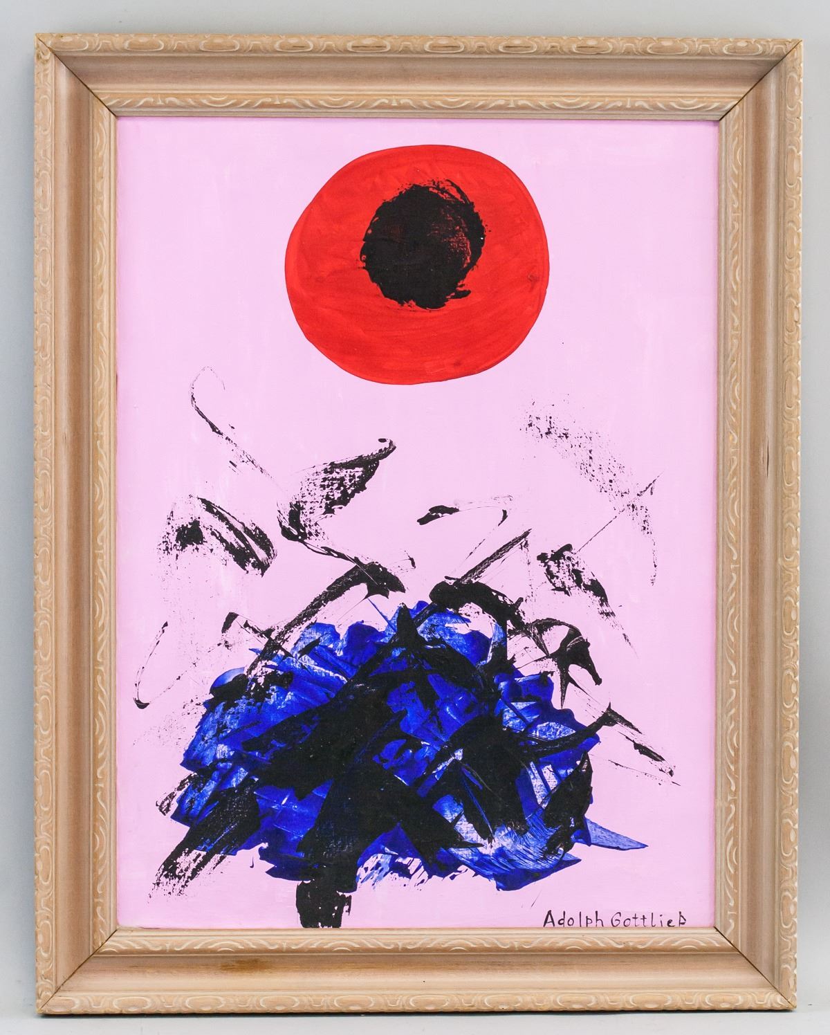 Oil on canvas, framed. Featuring an abstract expressionist composition. Signed Adolph Gottlieb on the lower right corner. Attributed to Adolph Gottlieb (1903-1974, American). 51 x 38 cm (20 x 15 inches), framed size: 60 x 47 cm (23.5 x 18.5 inches). Provenance: This lot carries limited provenance from a Southern Ontario estate