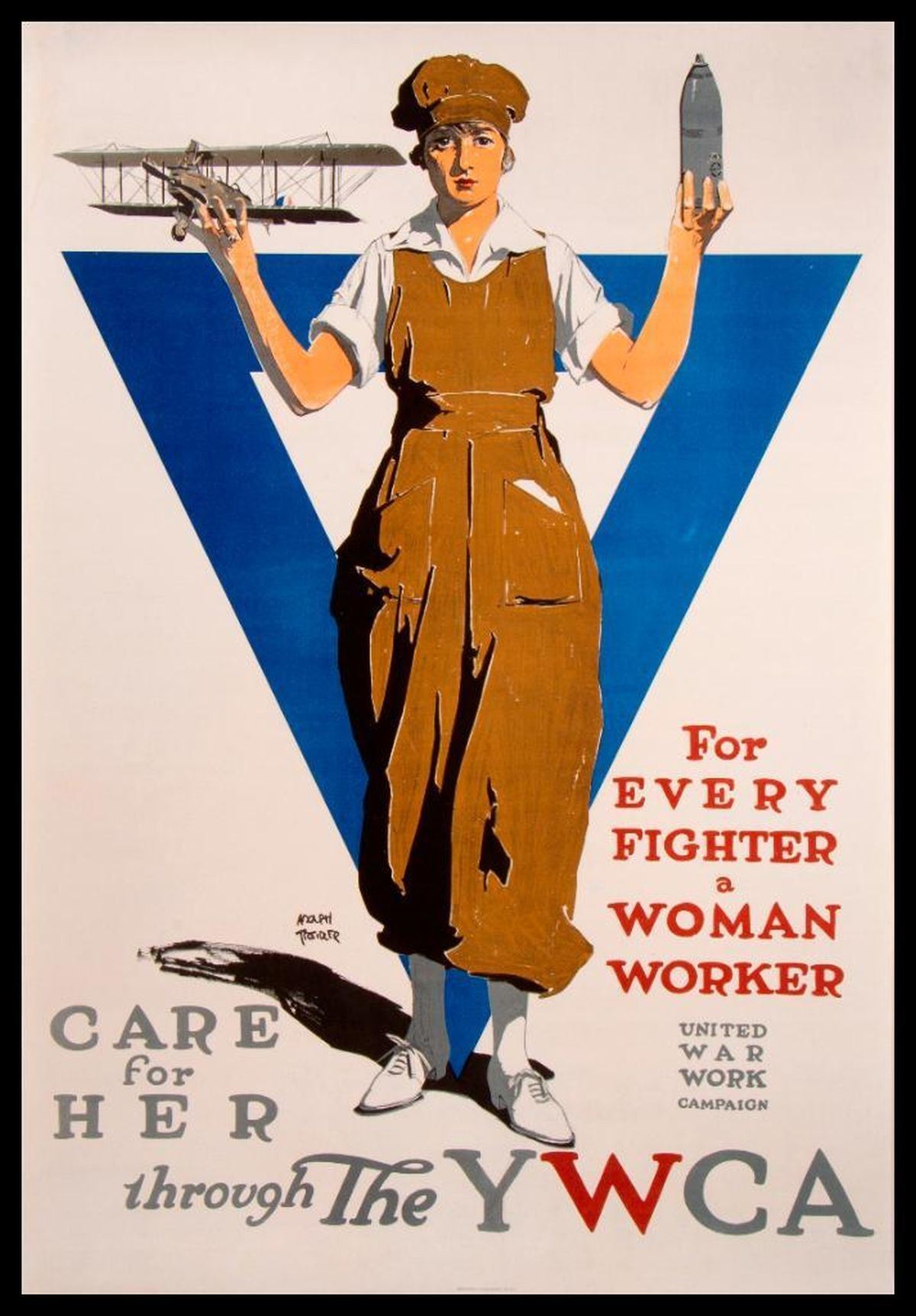 Vintage World War I Poster. "For Every Fighter a Woman Worker", 1918. Paper size: 42 x 30 inches. Linen backed. Condition: as per photograph.