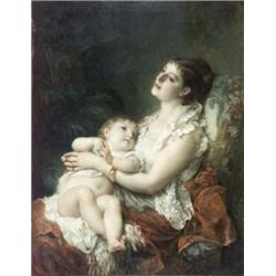 Adolphe Jourdan (French 1825-1889), Mother and Child, Signed A. Jourdan l.r., Oil on canvas...