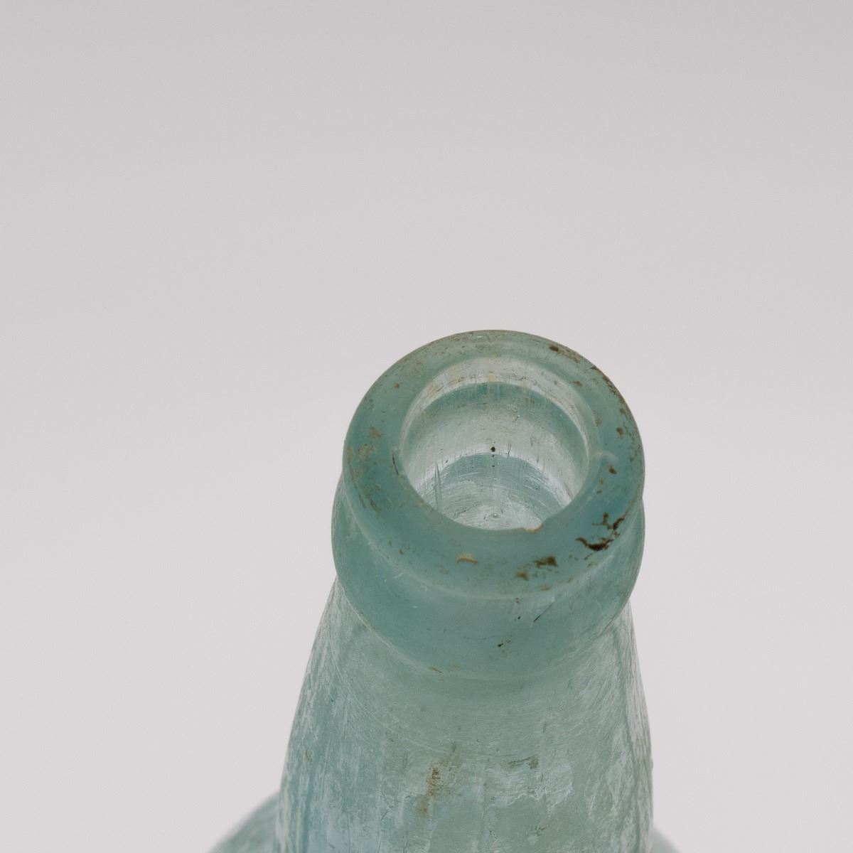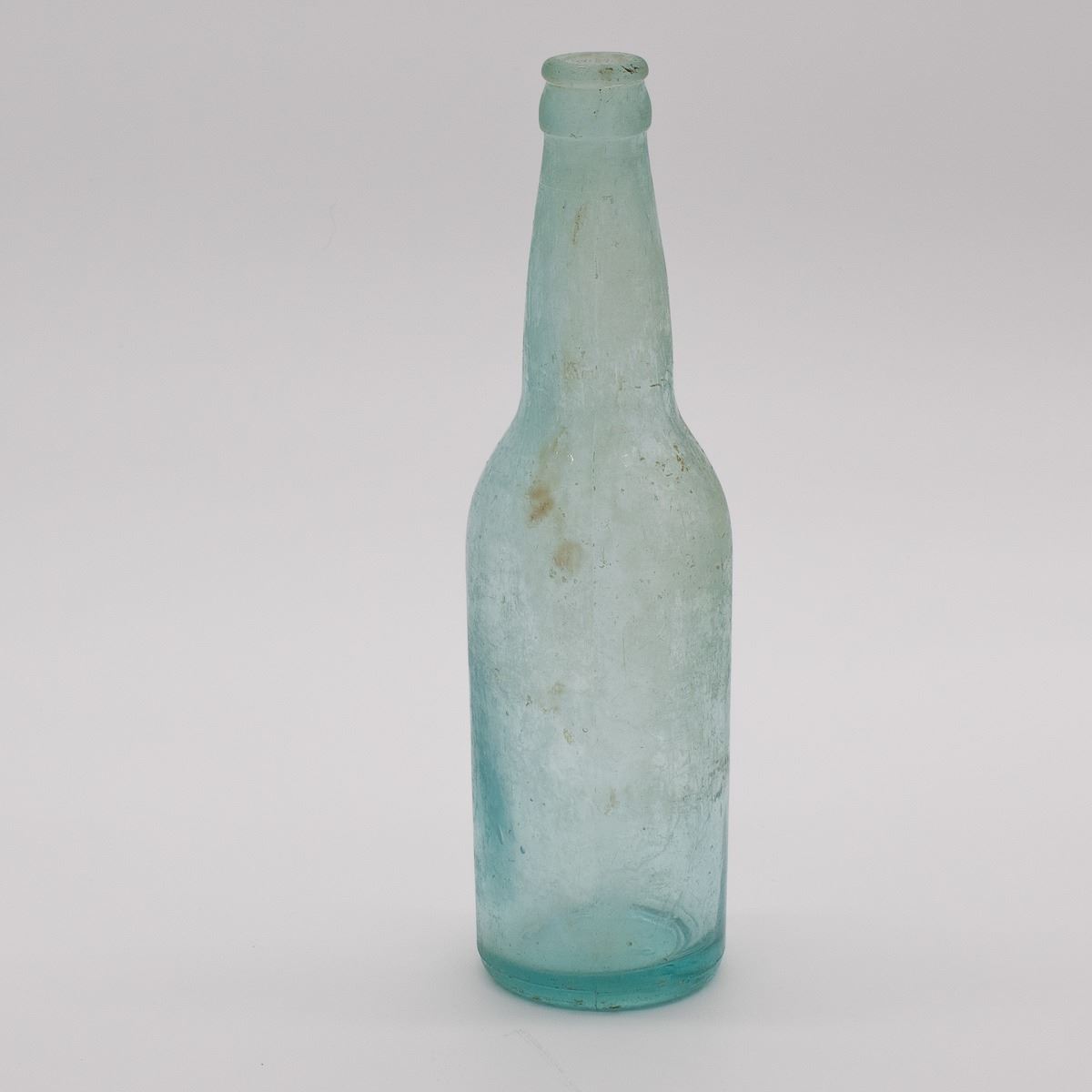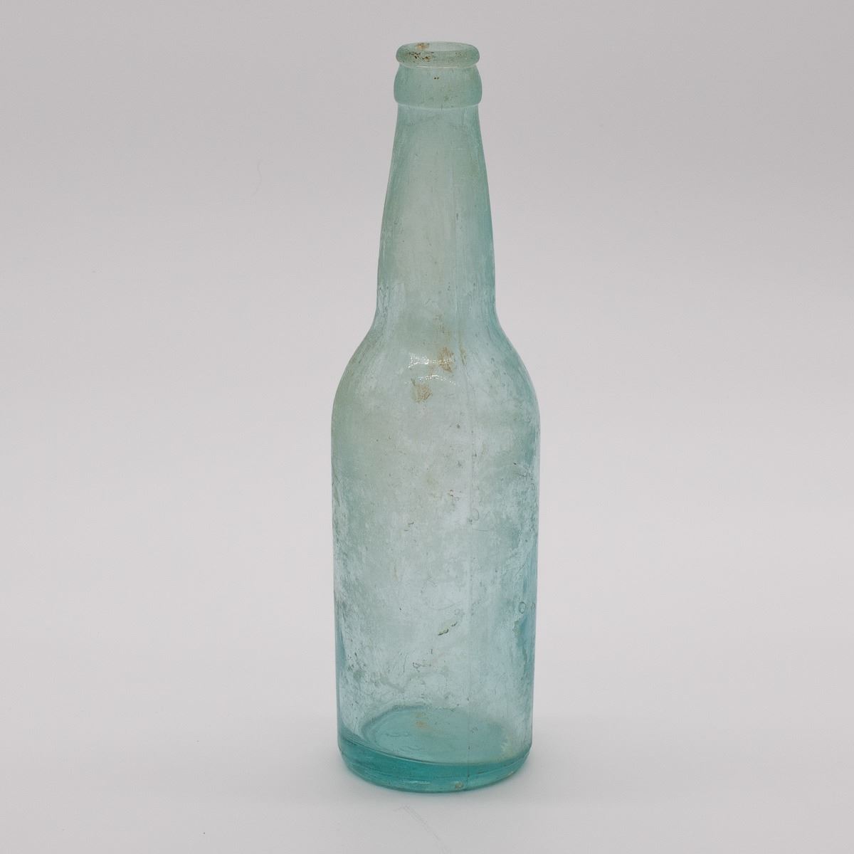 Adolphus Busch Aqua Glass Beer Bottle, measures 9.5''H x 2.5''D and is marked on the bottom, ca. 1905-1917