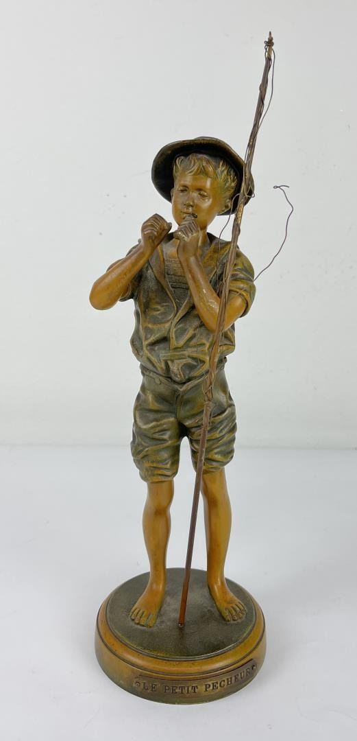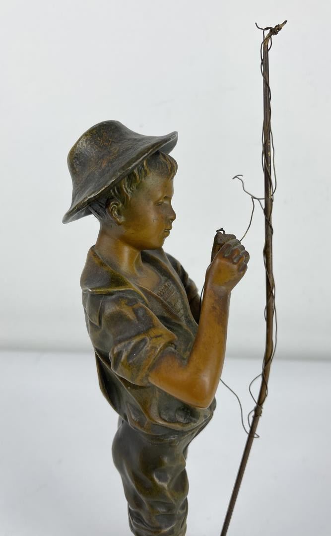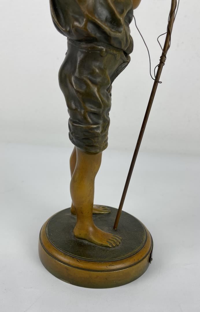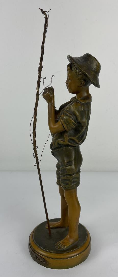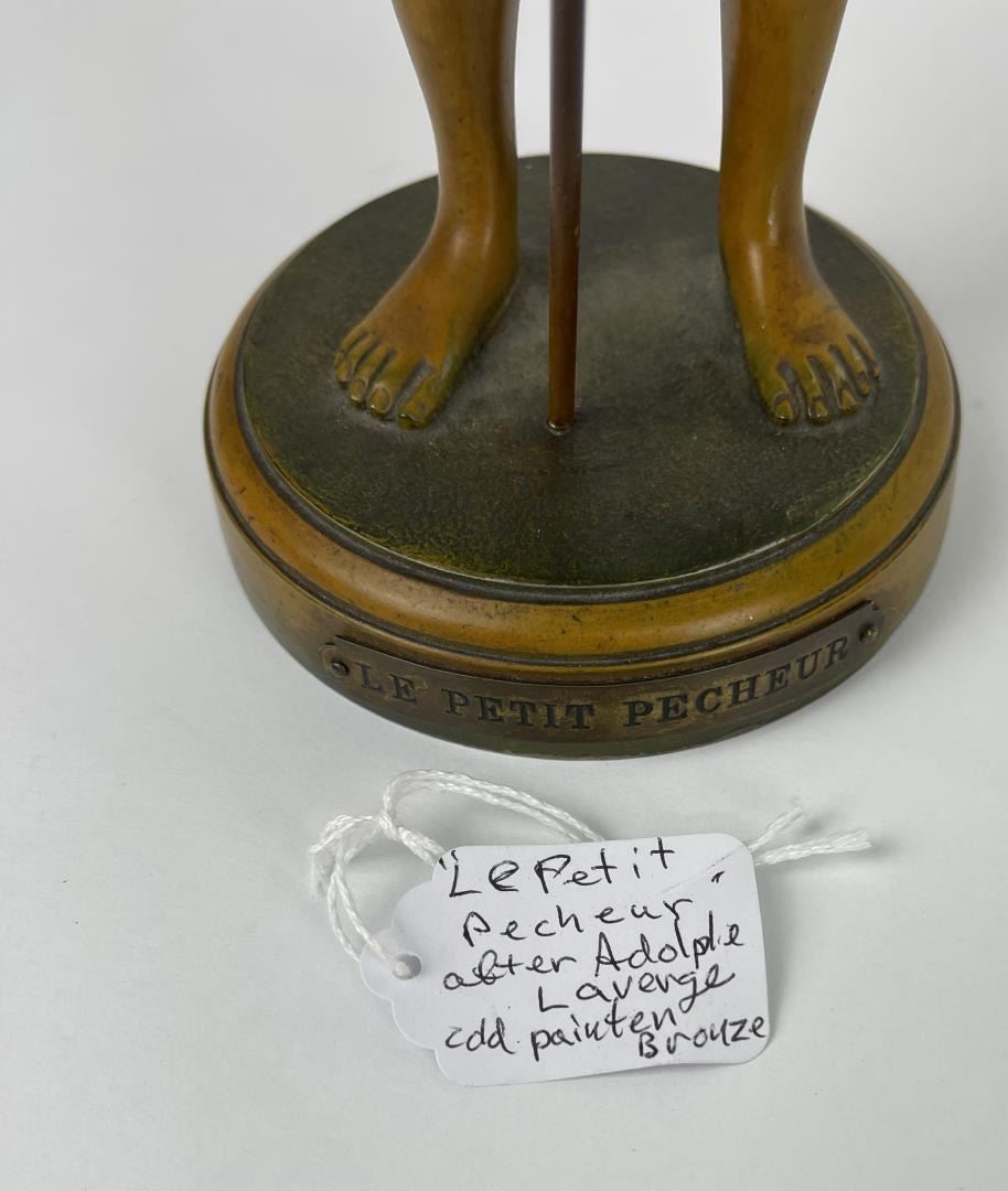 Nice cold painted austrian bronze by Adophe Jean Lavergne. Title is The Little Fisherman. 14" tall.