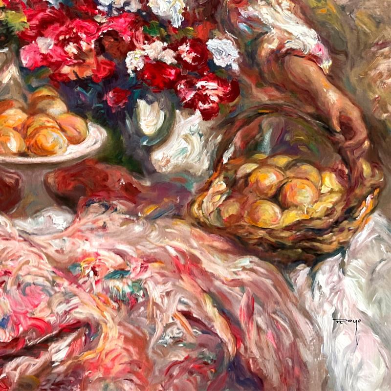 "Adorando La Mesa" is a limited edition publisher's proof on clay-board by Royo, numbered 1/3 and hand signed by the artist. Includes Letter of Authenticity. Measures approx. 29" x 36" (image).