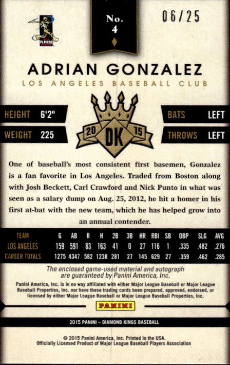 Adrian Gonzalez Game-Worn Dual Patch Auto /25 2015 Panini Diamond Kings #4
