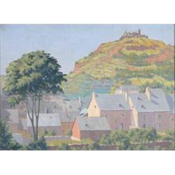 Adrian Waterlow (Exh.1937-8) oil on canvas, Rooftops with hillside beyond, Studio stamp, 12 x 16 ins. £80-120